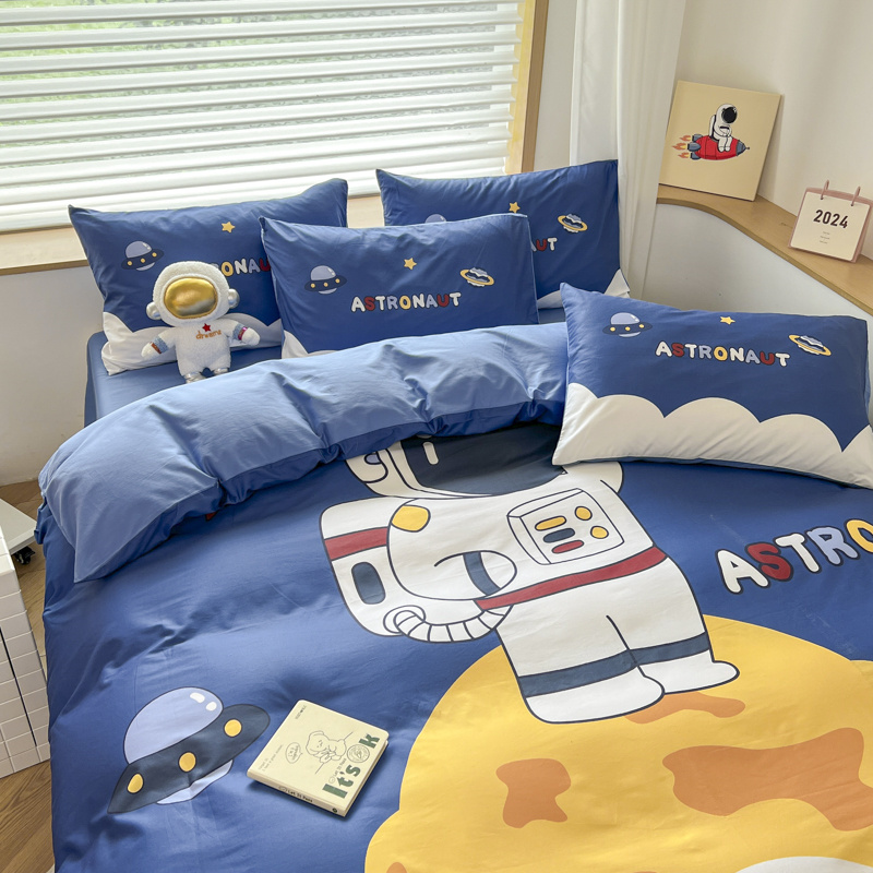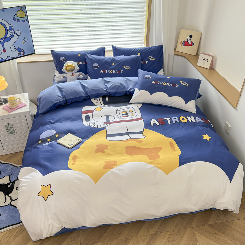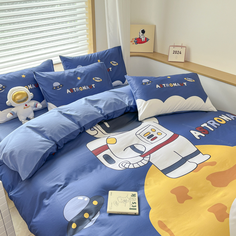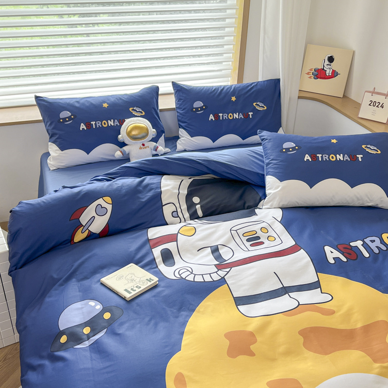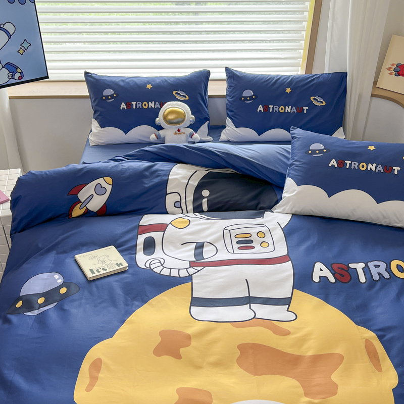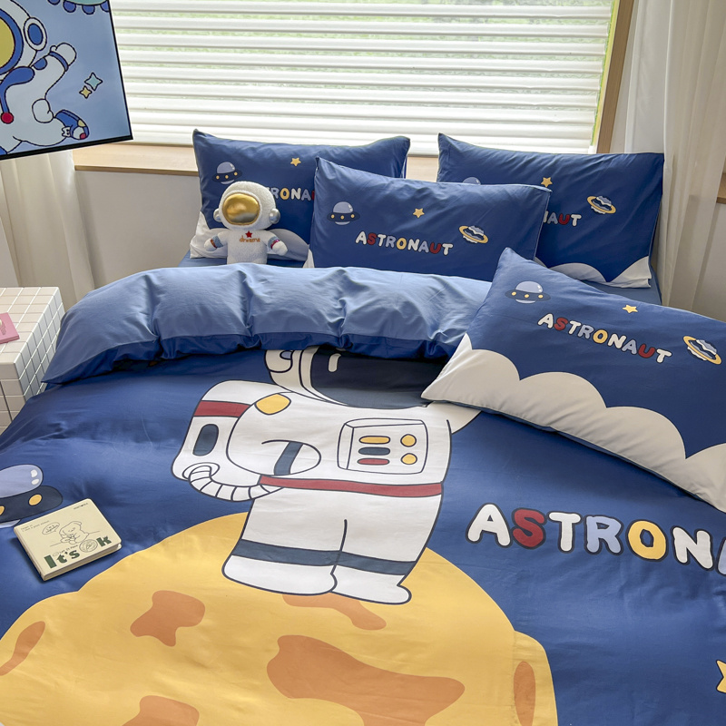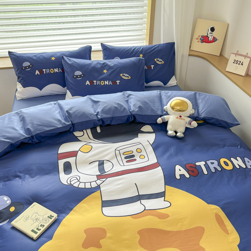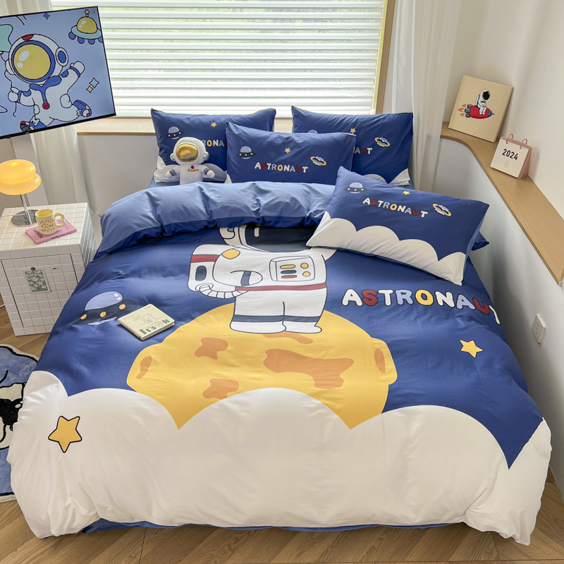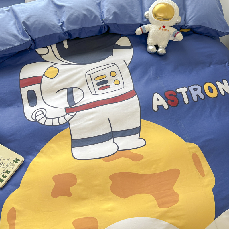 当前位置: 91家纺网 > 商品网购 > 床品套件 > 四件套 > 全棉普通四件套 > 孩子王 2025新款亲肤活性大版纯棉专版太空人卡通学生儿童宿舍四件套系列 月球漫步