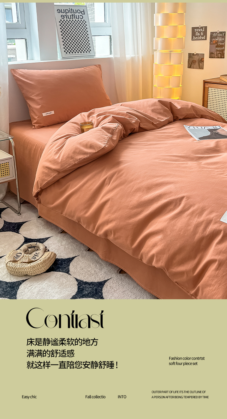 当前位置: 91家纺网 > 商品网购 > 床品套件 > 四件套 > 水洗棉四件套 > 蓝邻家纺 2024新款纯色水洗棉贴标四件套 焦糖色