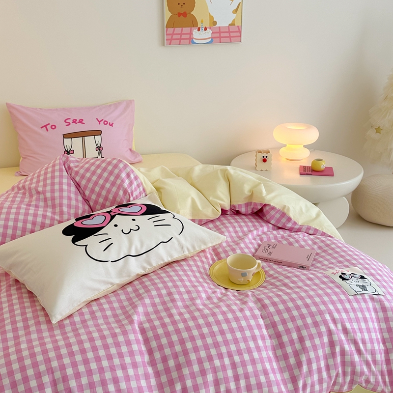 (总)2023新款40支纱全棉13070锁边工艺款四件套系列,格子爱心,嘉兰,咖条,朗尼,小兔兔,星星兔
