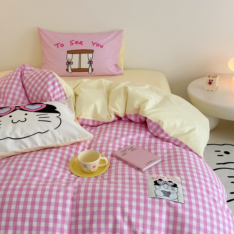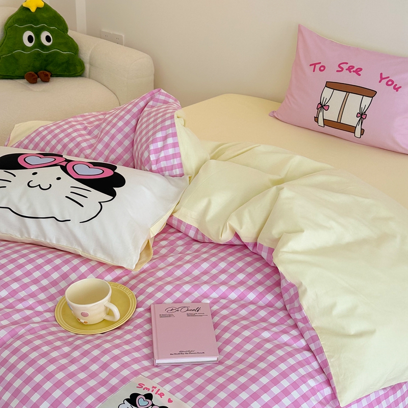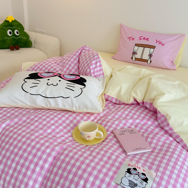 珺柔家纺 2024新款全棉40支贴画数码印花枕套四件套 微笑猫猫