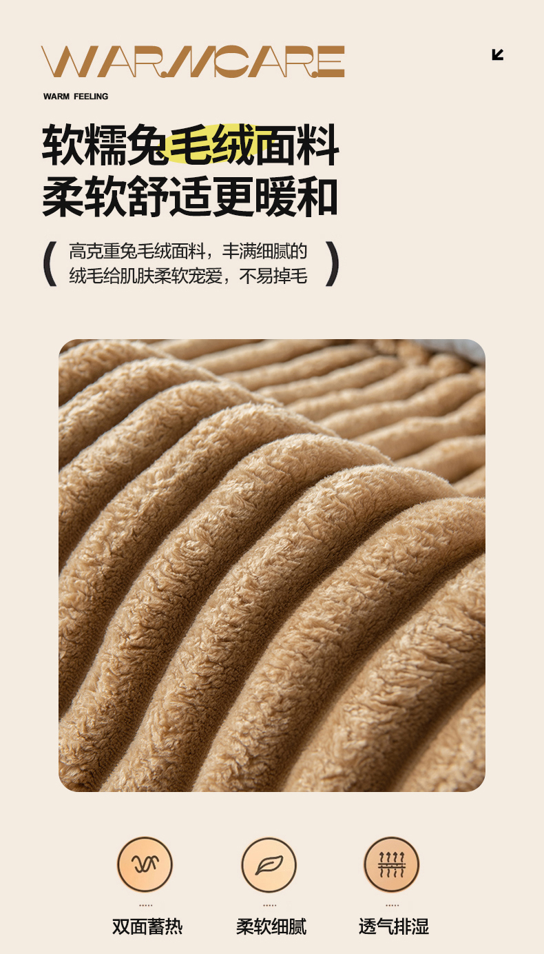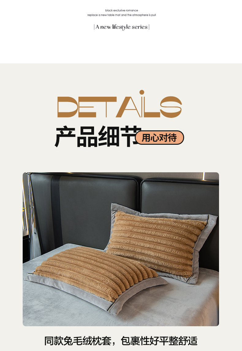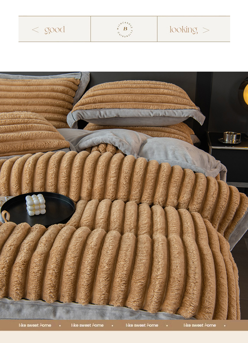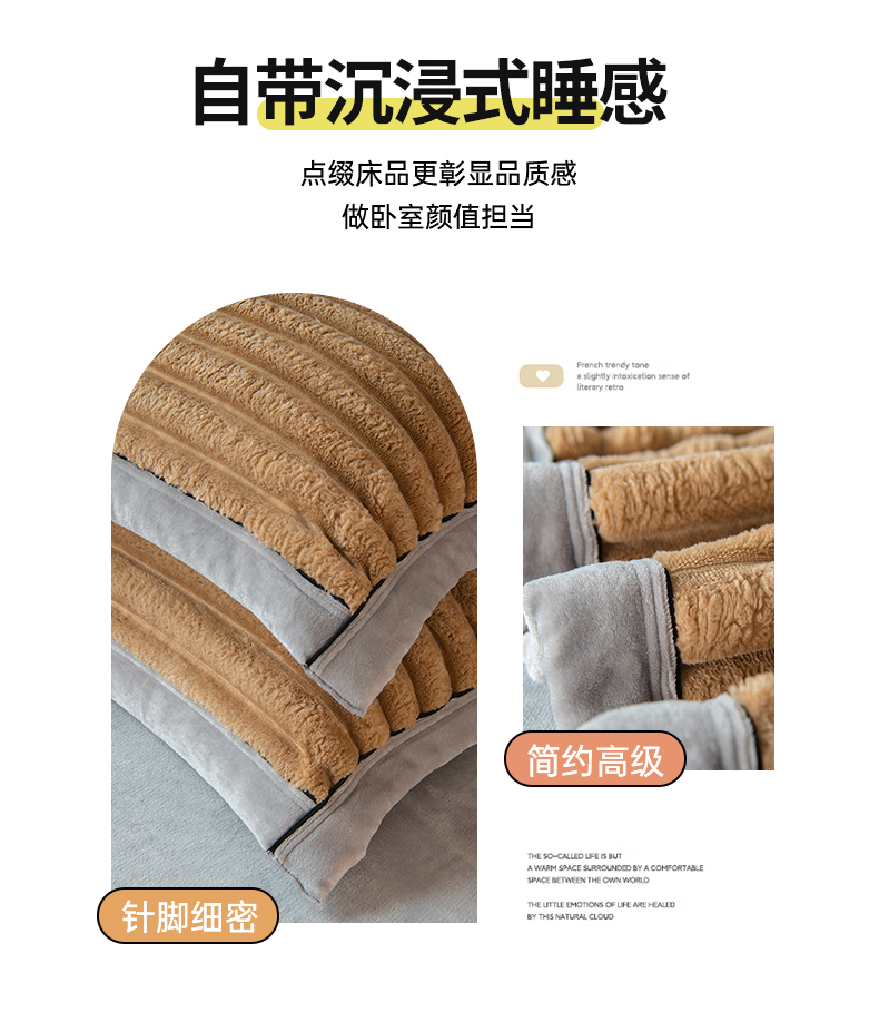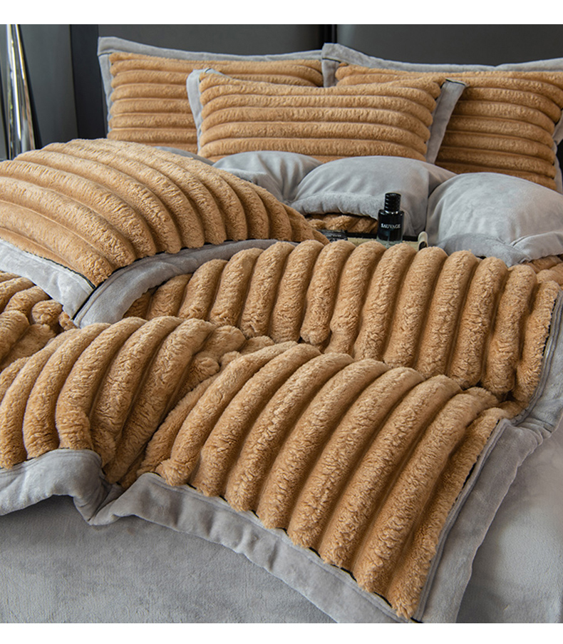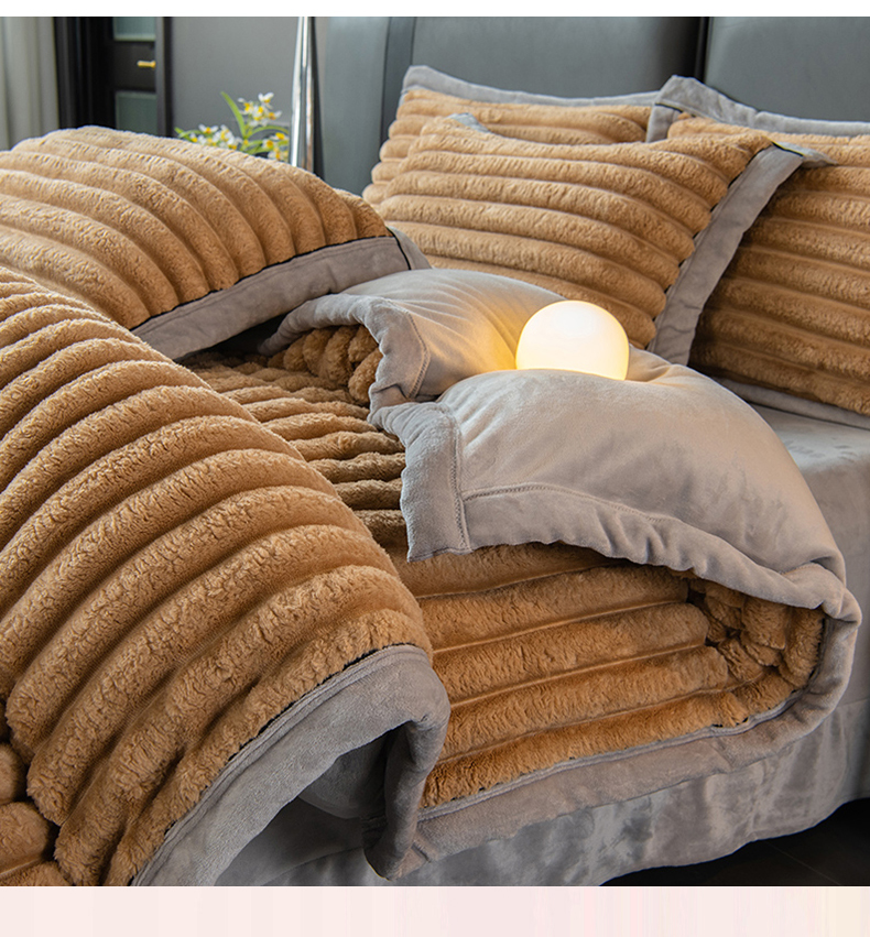 商品名称:妮恒美家纺 2024新款400克超厚竖条兔毛绒四件套 竖条兔绒-拿铁咖