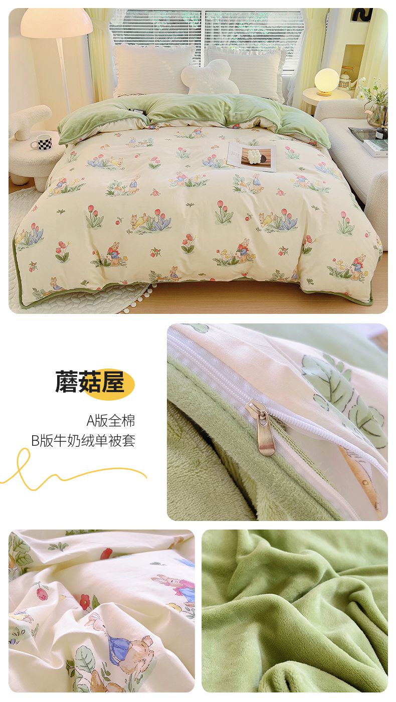 琪琪阁 2023新款A棉B绒棉加绒牛奶绒四件套单被套 蘑菇屋,蘑菇屋