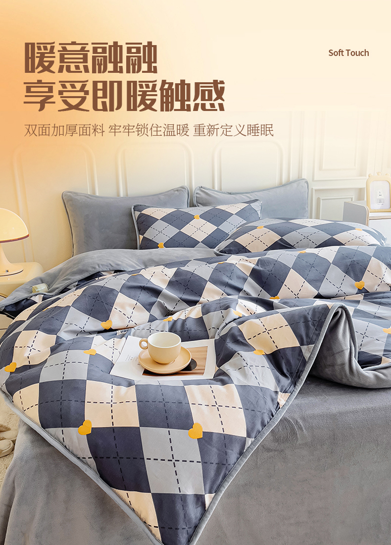 琪琪阁 2023新款A棉B绒棉加绒牛奶绒四件套单被套 宁静生活,宁静生活