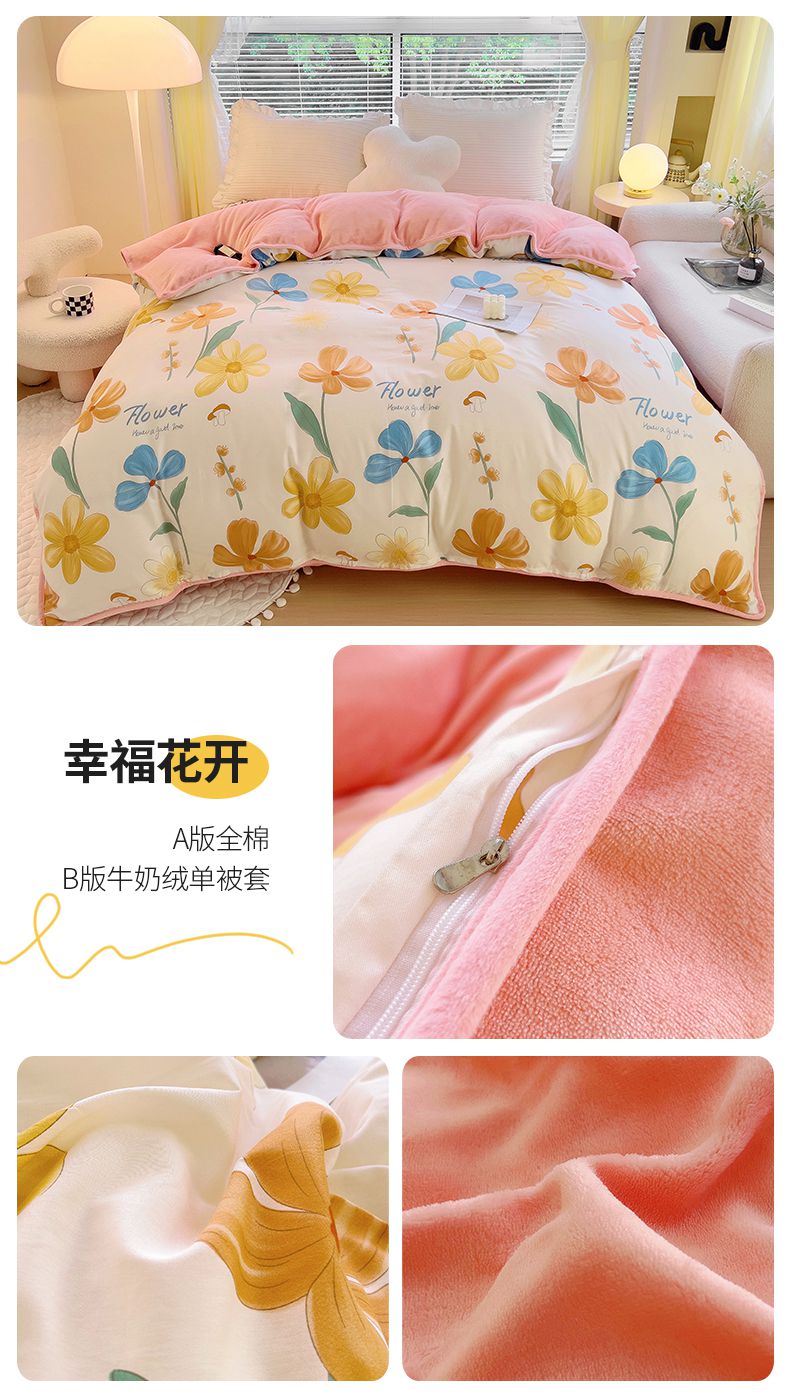 琪琪阁 2023新款A棉B绒棉加绒牛奶绒四件套单被套 向阳花开,向阳花开