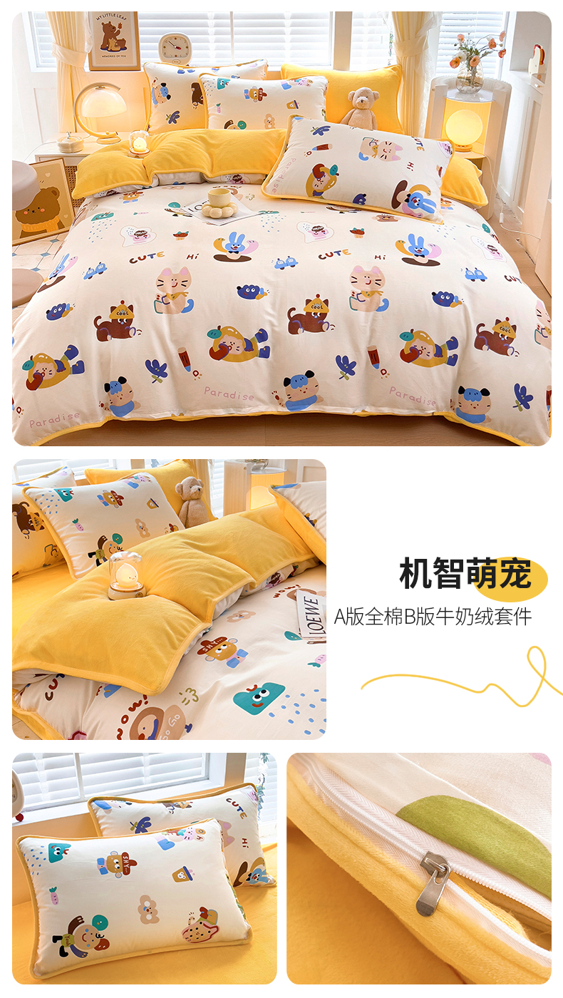 (总)琪琪阁家纺 2025新款A类全棉纯棉加牛奶绒包边款单被套四件套,宝宝巴士,草莓甜心,初恋日记,菲拉格,机智萌宠,恋恋花语,漫步太空,蘑菇屋,宁静生活,情缘,手绘浪漫,太空熊,温婉佳人,笑脸草莓,熊猫乐园,字母熊,爱达拉,爱心恐龙,贝斯特,布兰卡,春日女孩,呆萌宝贝,蒂芙娜,怪兽学院,花满城,可乐贝儿,麦穗飘香,梦蝶,蜜桃松鼠,奇妙之旅,清风烟雨,瑞迪熊,水墨嫣然,汪星人,小幸运,熊猫戏水,悦享生活,枕边语,菲尔顿,童年颂,星空宝贝,雅韵花香,云梦花都