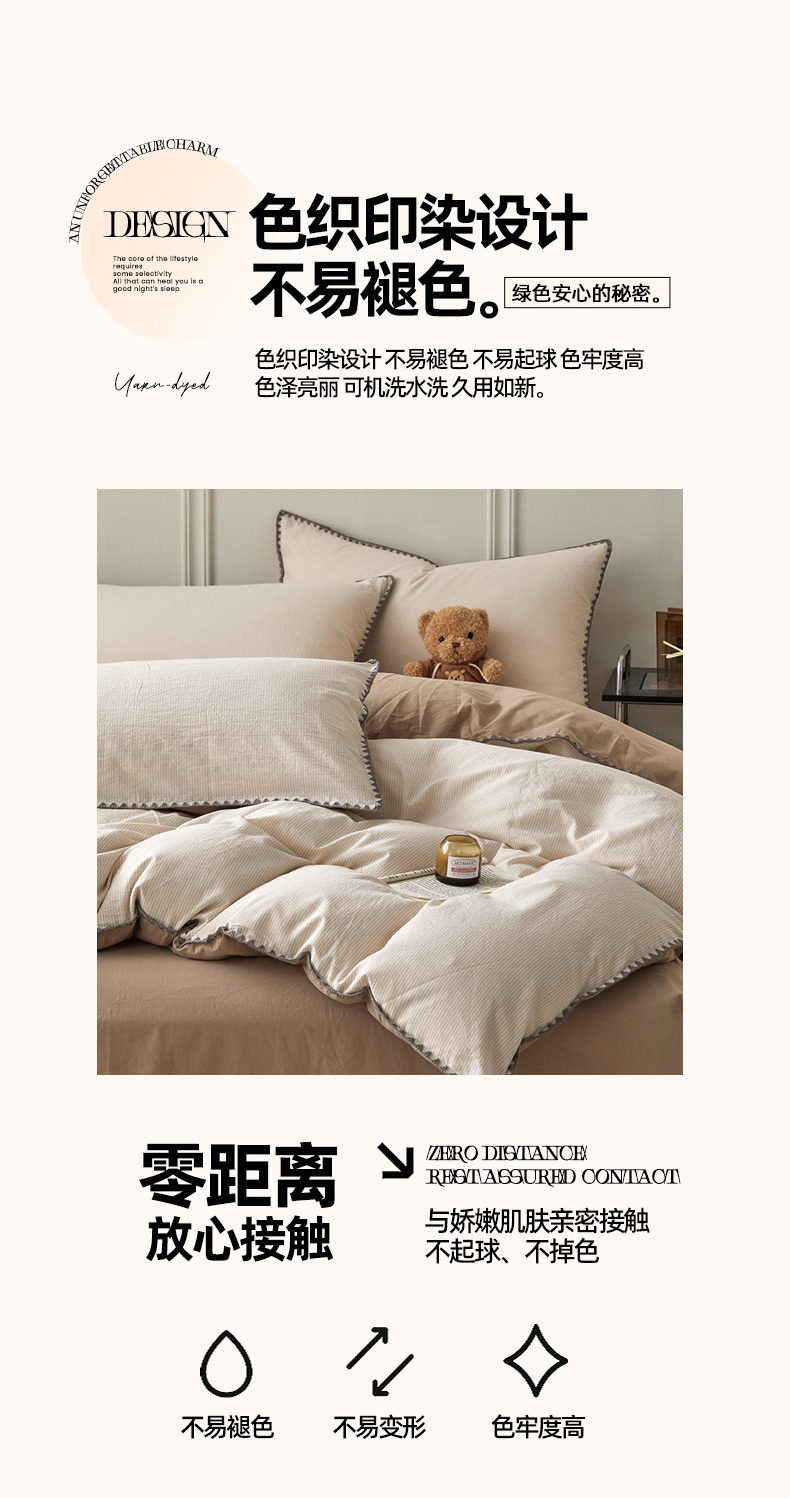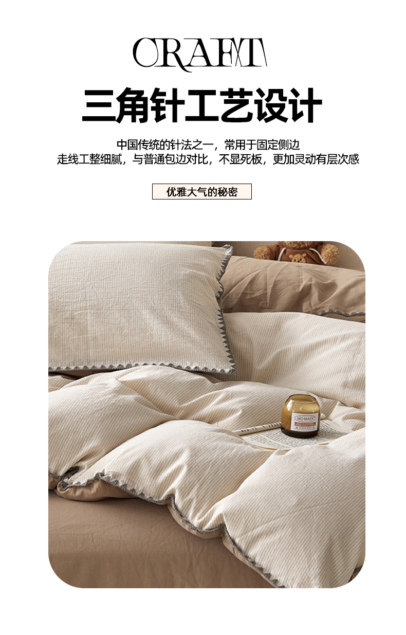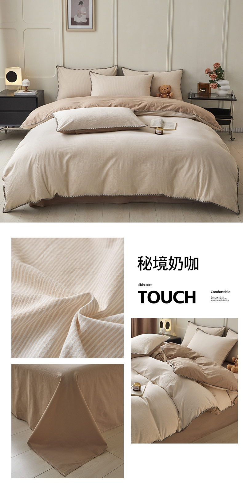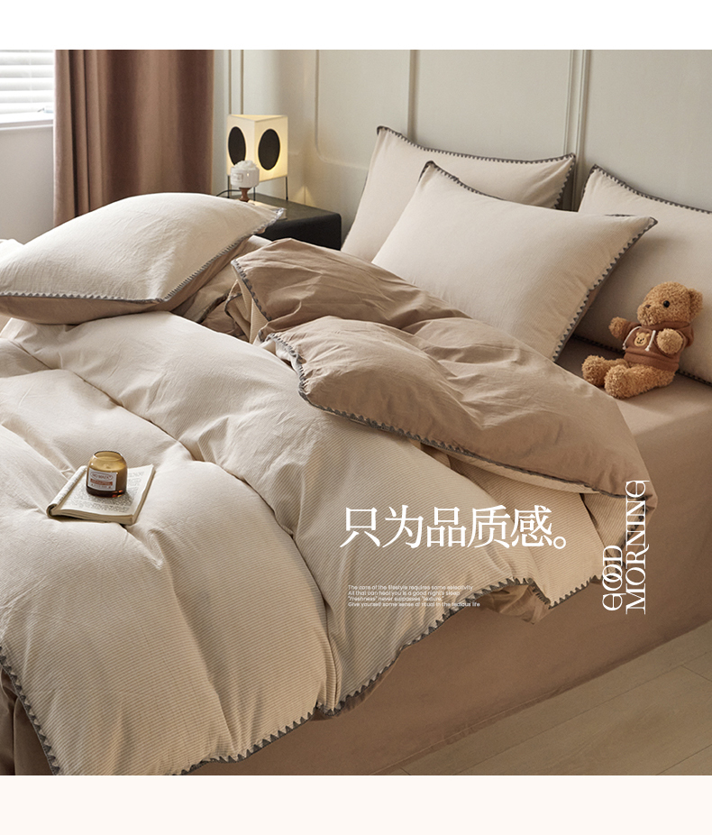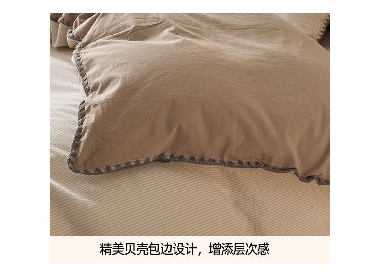 商品名称:吉象家纺 2024新款A类全棉色织水洗棉贝壳边三角针四件套 秘境奶咖