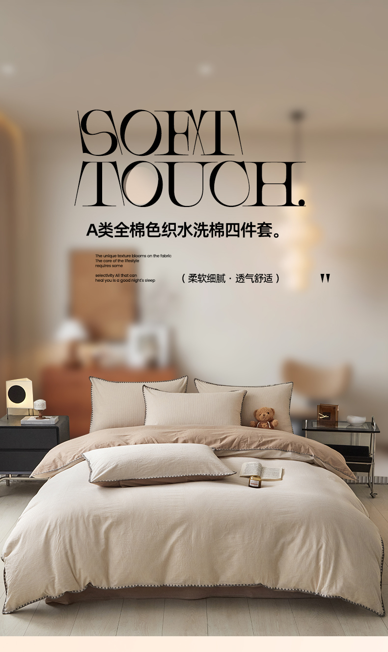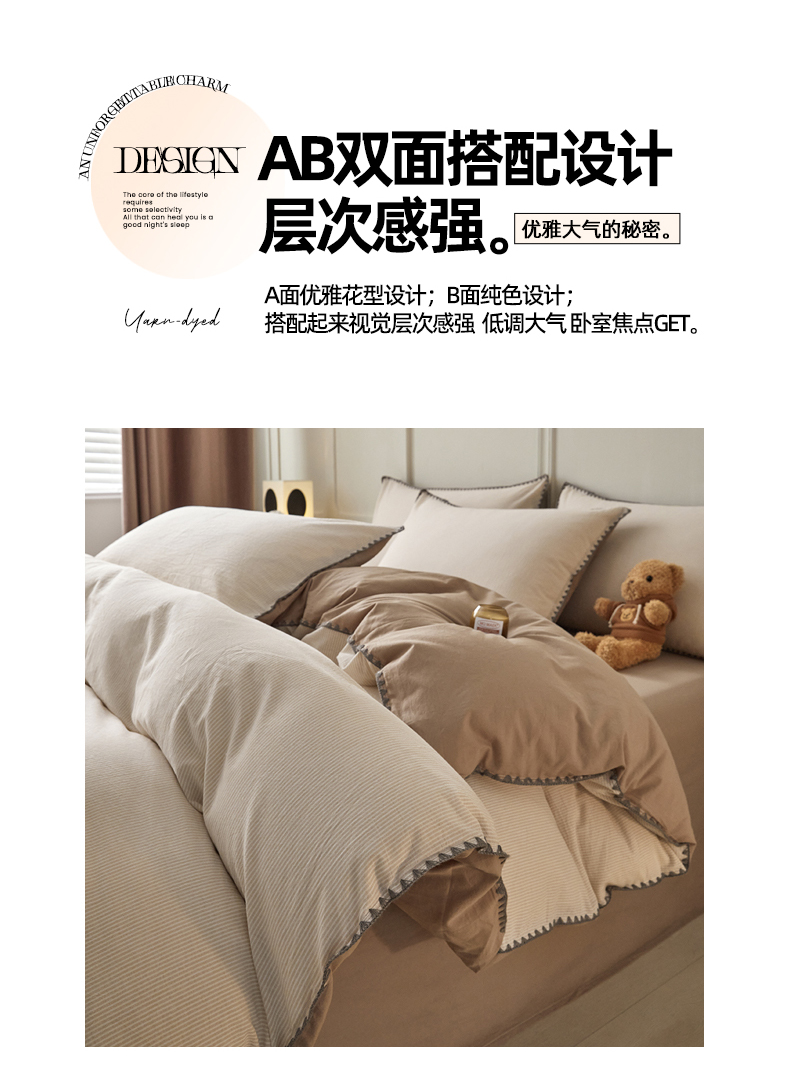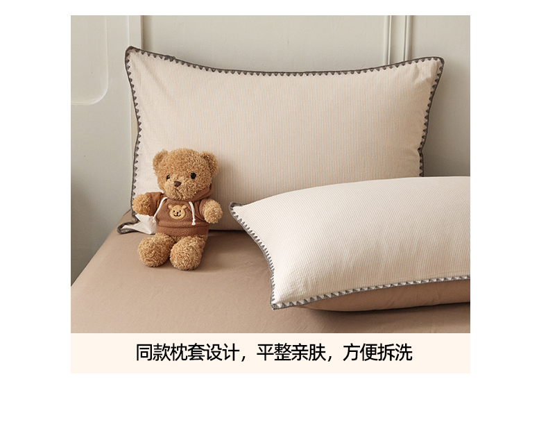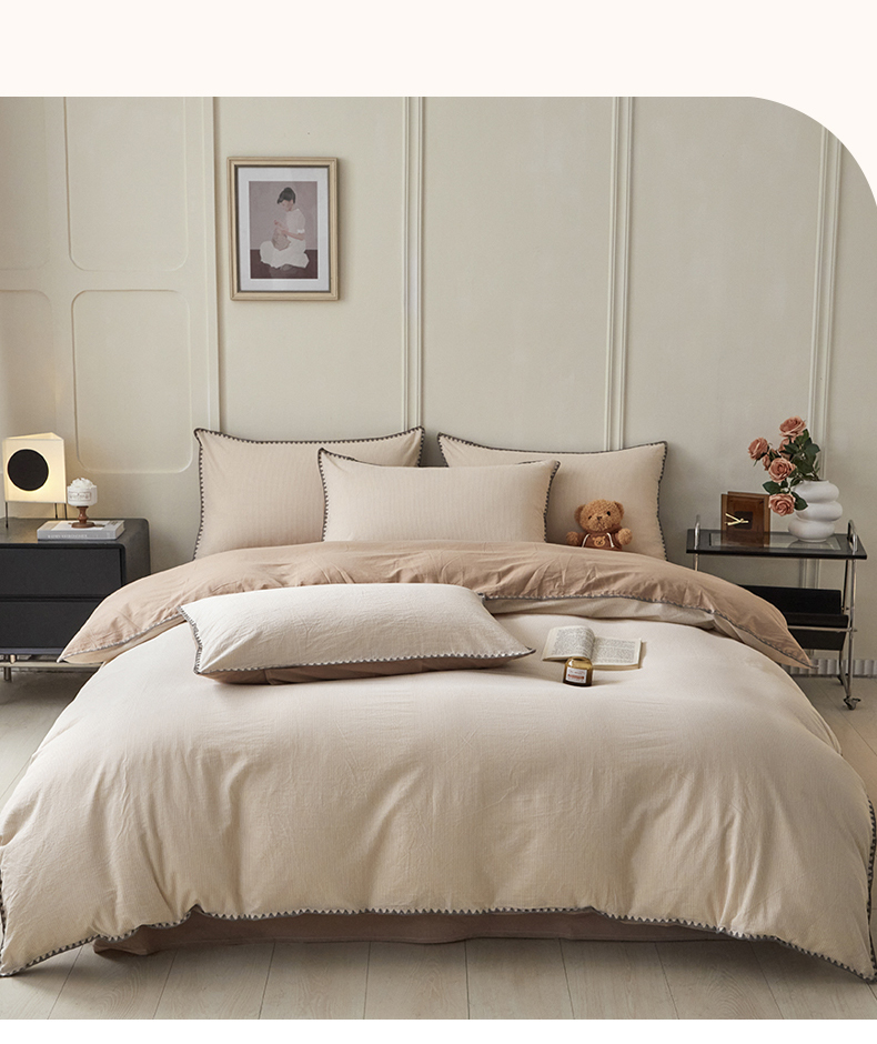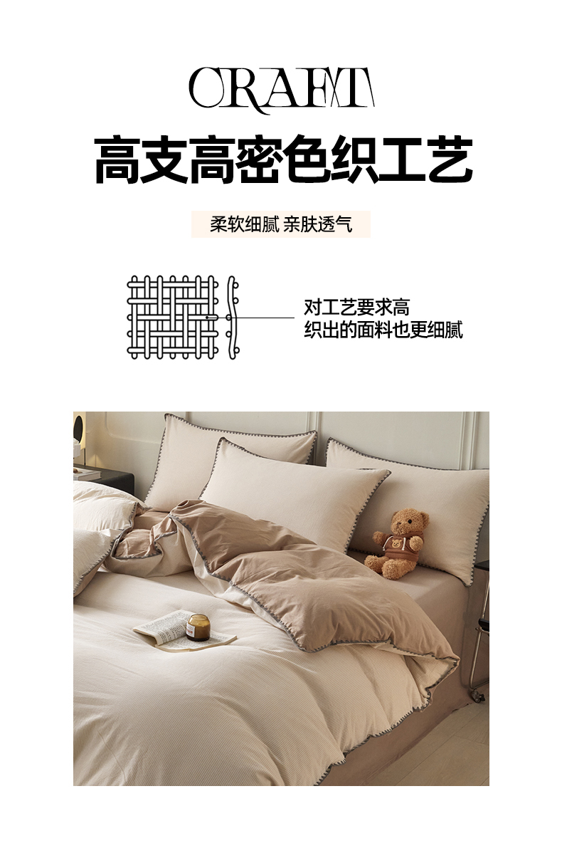 商品名称:吉象家纺 2024新款A类全棉色织水洗棉贝壳边三角针四件套 秘境奶咖