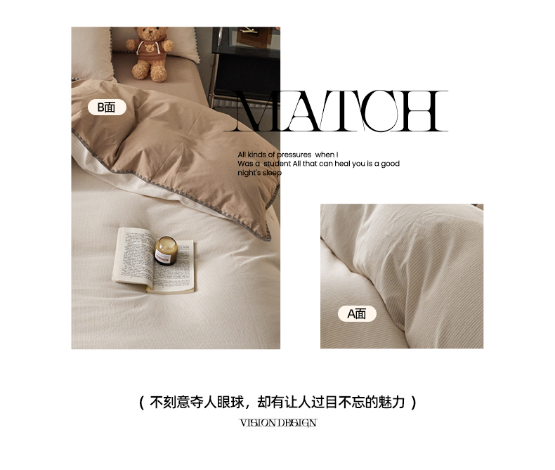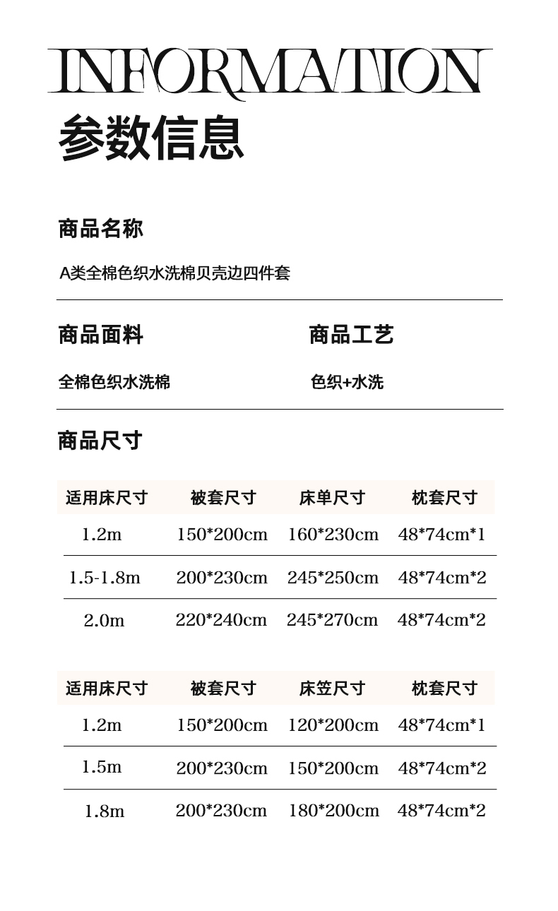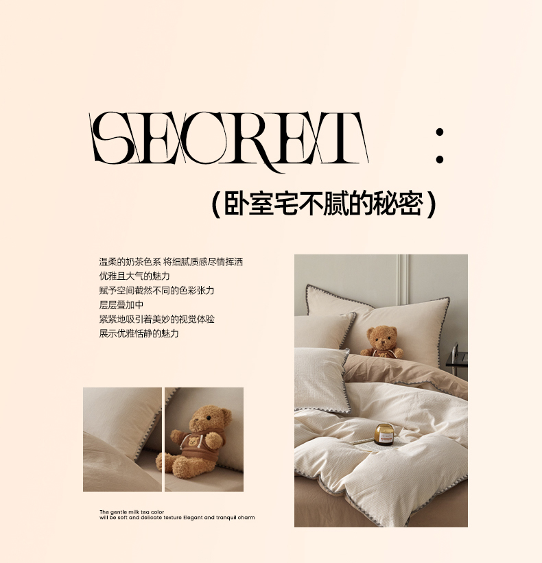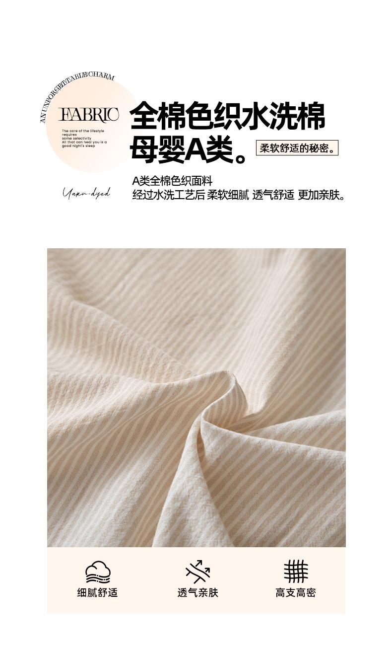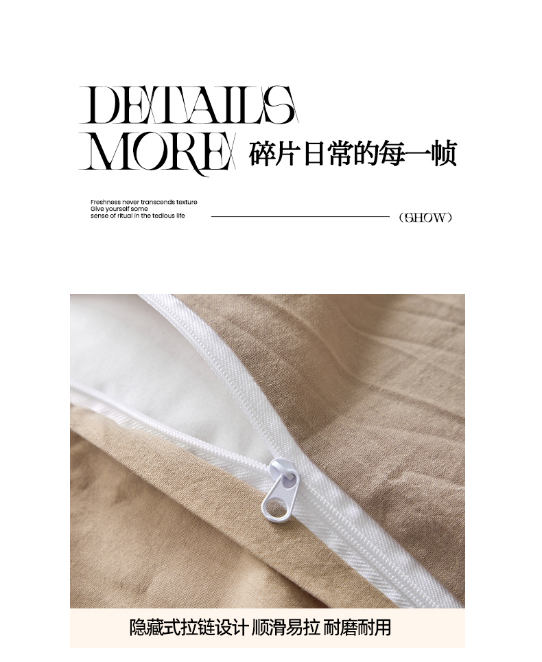 商品名称:吉象家纺 2024新款A类全棉色织水洗棉贝壳边三角针四件套 秘境奶咖