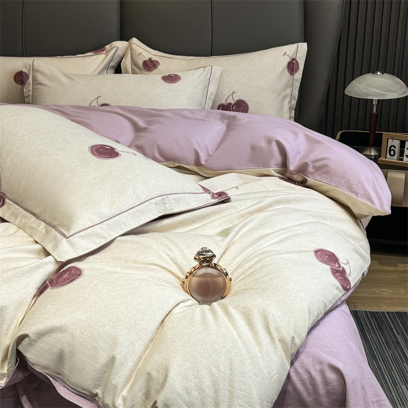 (总)嘉汀兰 2023新款60支全棉磨毛绣花撞色轻奢四件套—暮里,粉色,红灰色,芥绿色,浅灰色,深青色