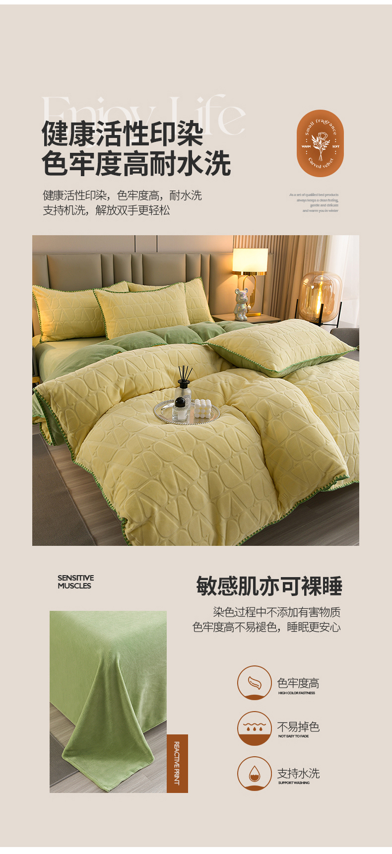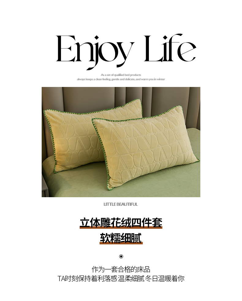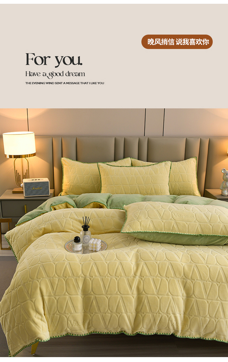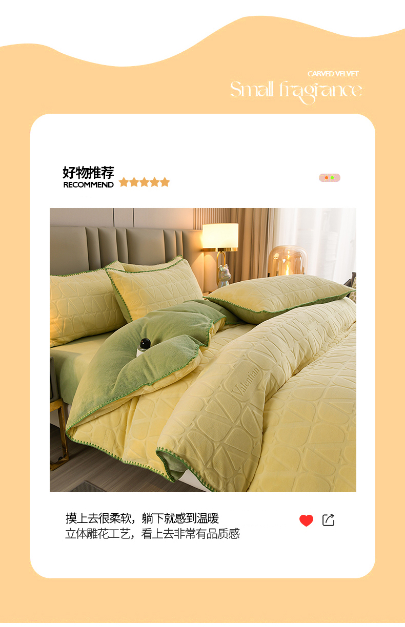 当前位置: 91家纺网 > 商品网购 > 床品套件 > 四件套 > 雕花绒四件套 > 菡宝 2024新款贝壳边雕花绒四件套 华威-鹅黄