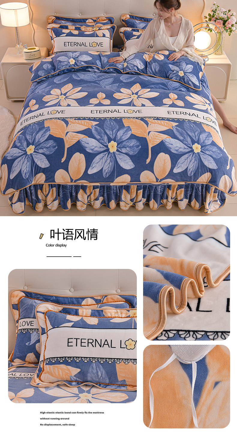 羽梦2025新款8.5斤牛奶法莱绒金貂法兰绒四件套直播爆款 叶语风情