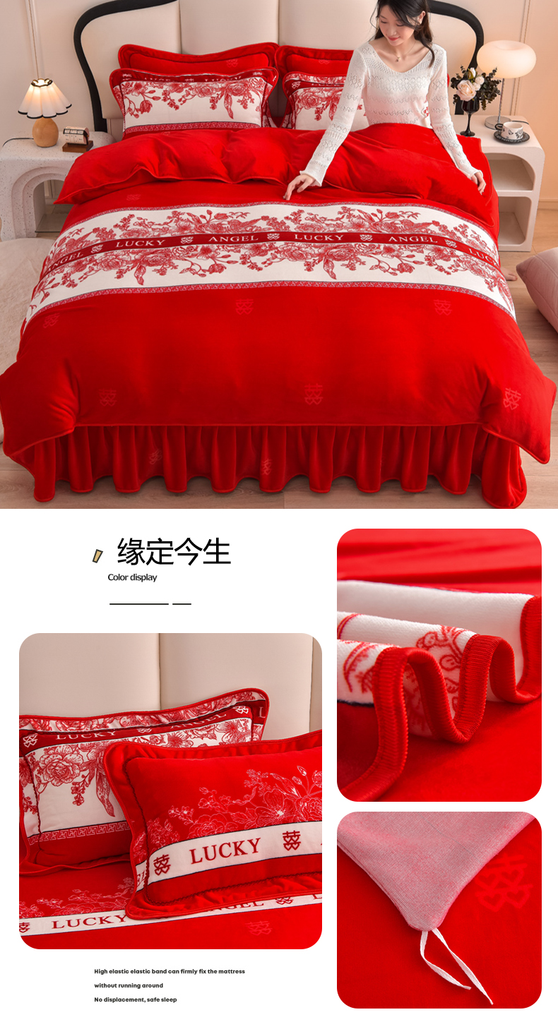 商品名称:羽梦2025新款8.5斤牛奶法莱绒金貂法兰绒四件套直播爆款 缘定今生