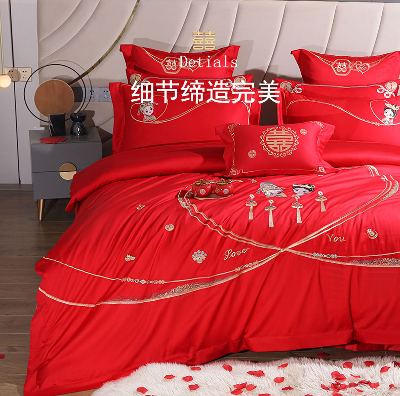 当前位置: 91家纺网 > 商品网购 > 床品套件 > 四件套 > 婚庆四件套 > 蒂爵 全棉纯棉长绒棉时尚新中式婚庆四件套多件套 钟爱一生