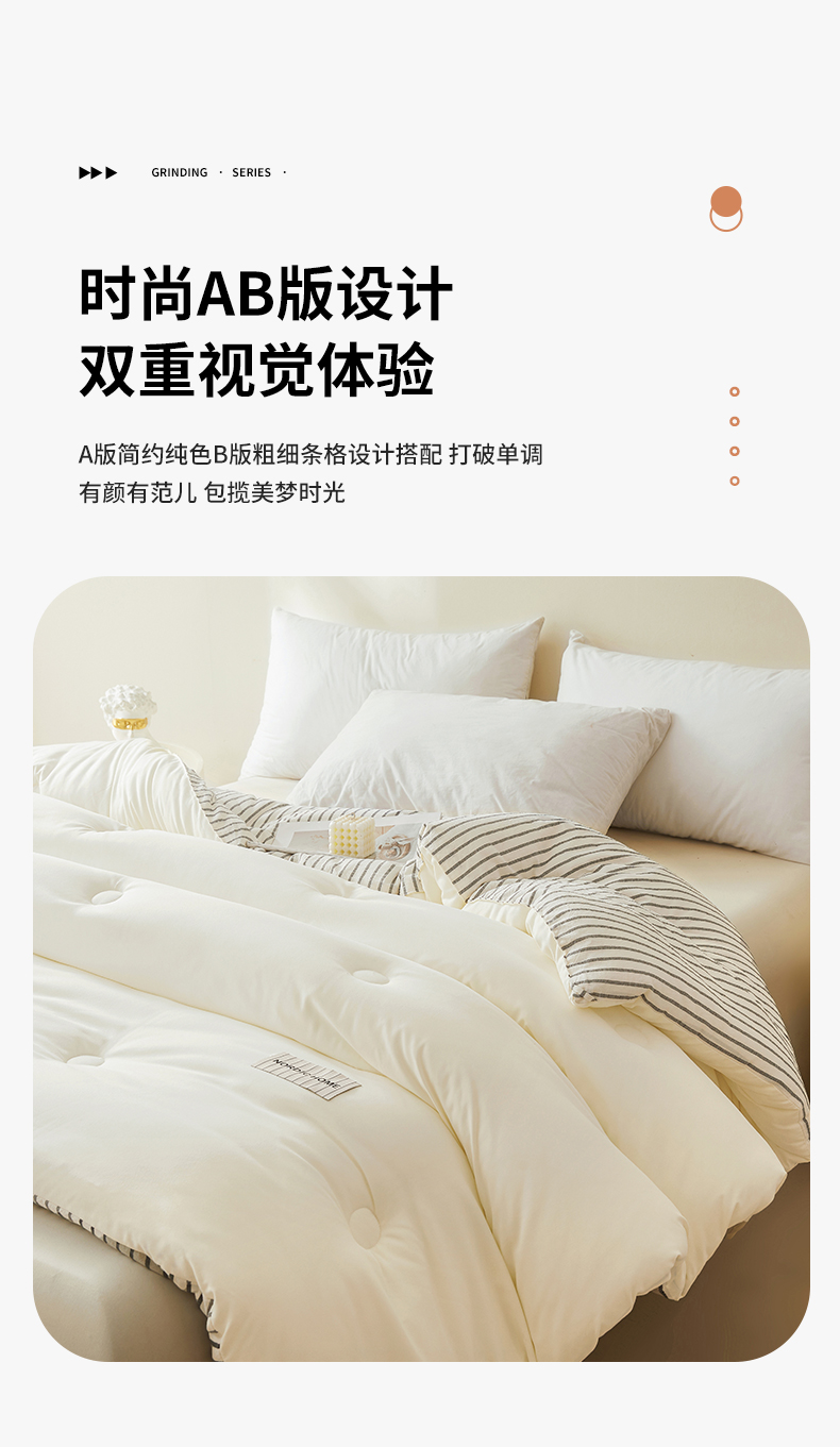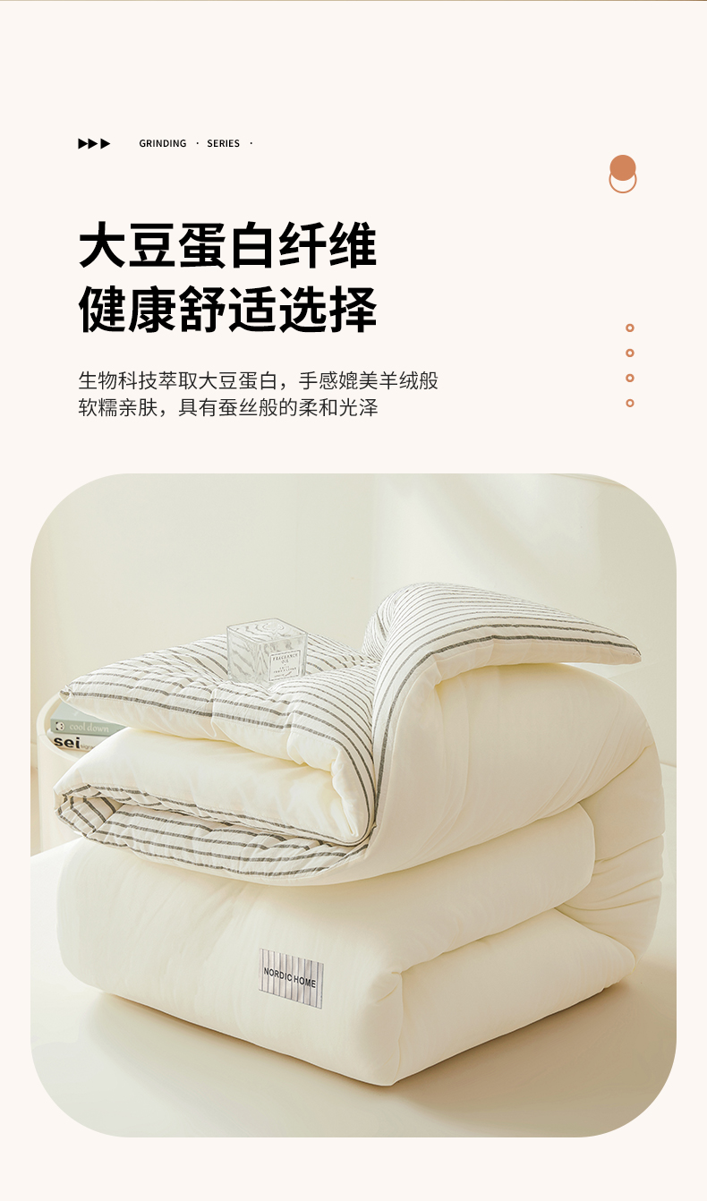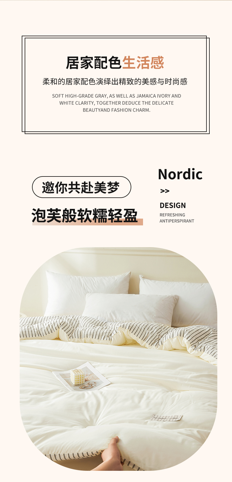 • 91家纺网 家纺一手货源 找家纺 荔禾家居 2024新款A类素色条纹双拼大豆被子被芯 条纹-珍珠白