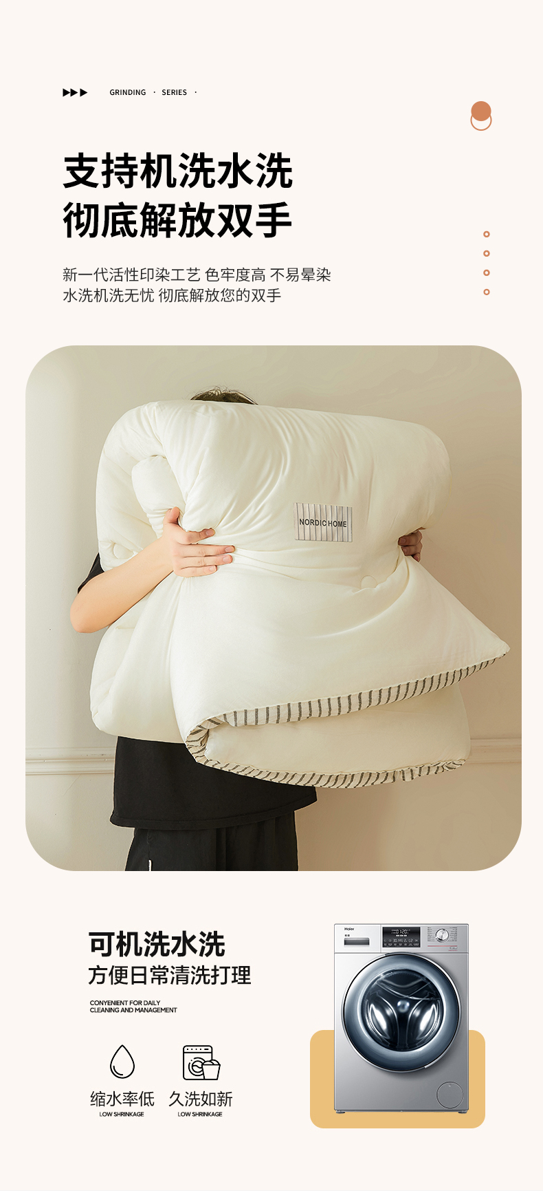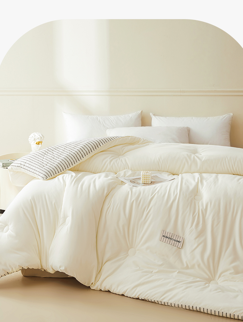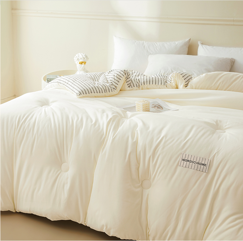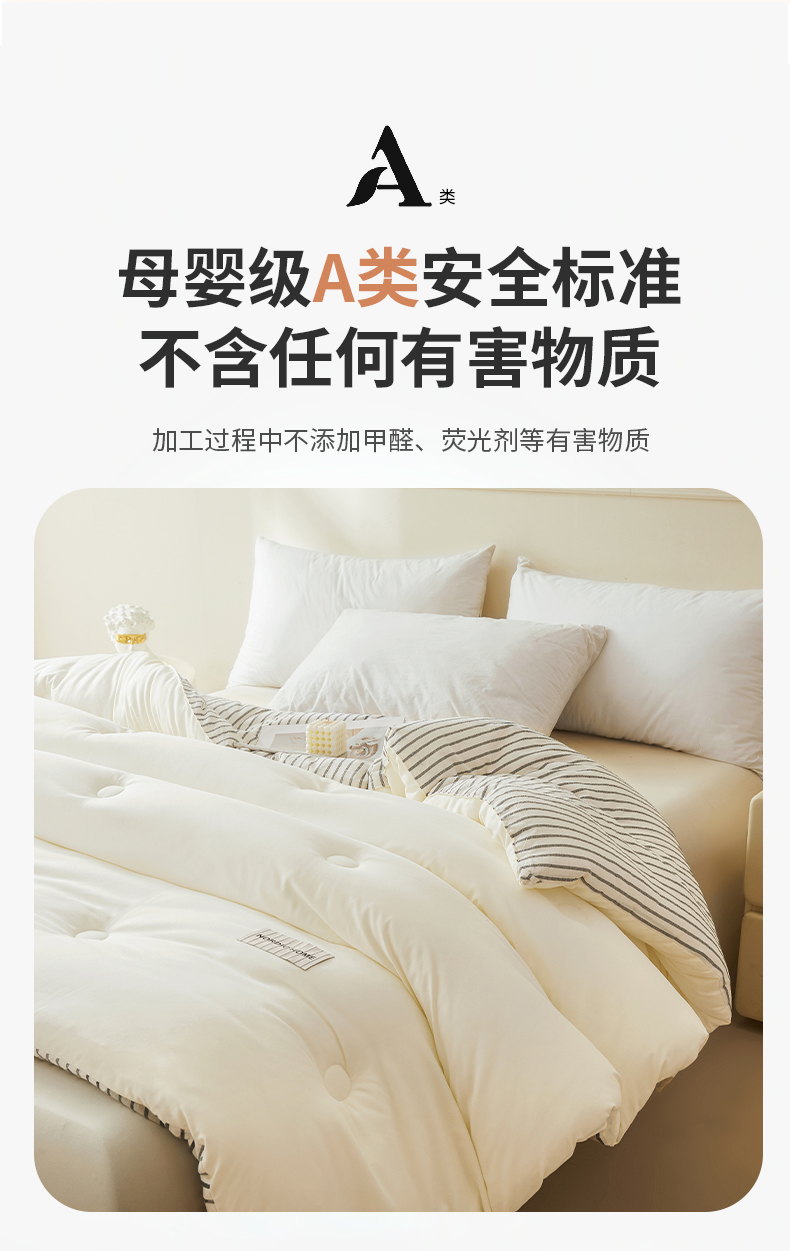 • 91家纺网 家纺一手货源 找家纺 荔禾家居 2024新款A类素色条纹双拼大豆被子被芯 条纹-珍珠白