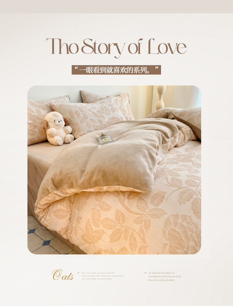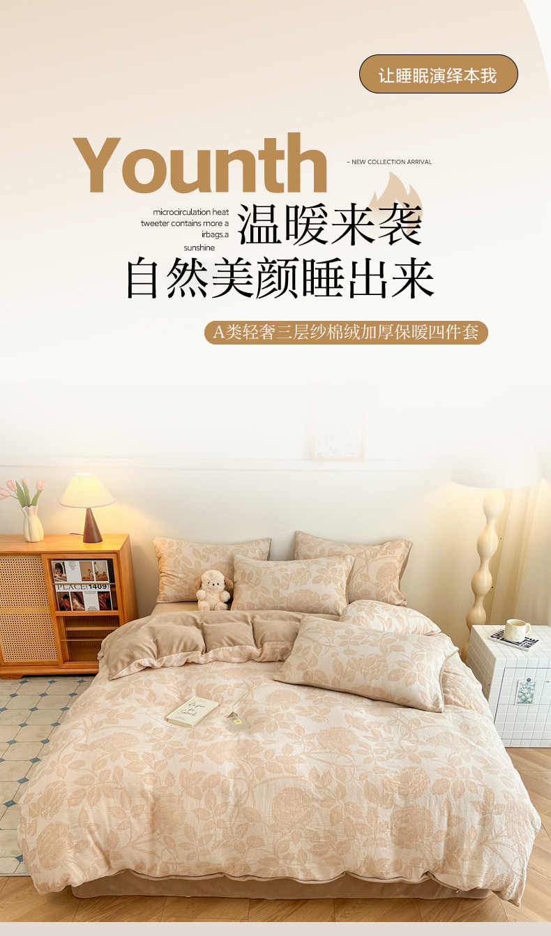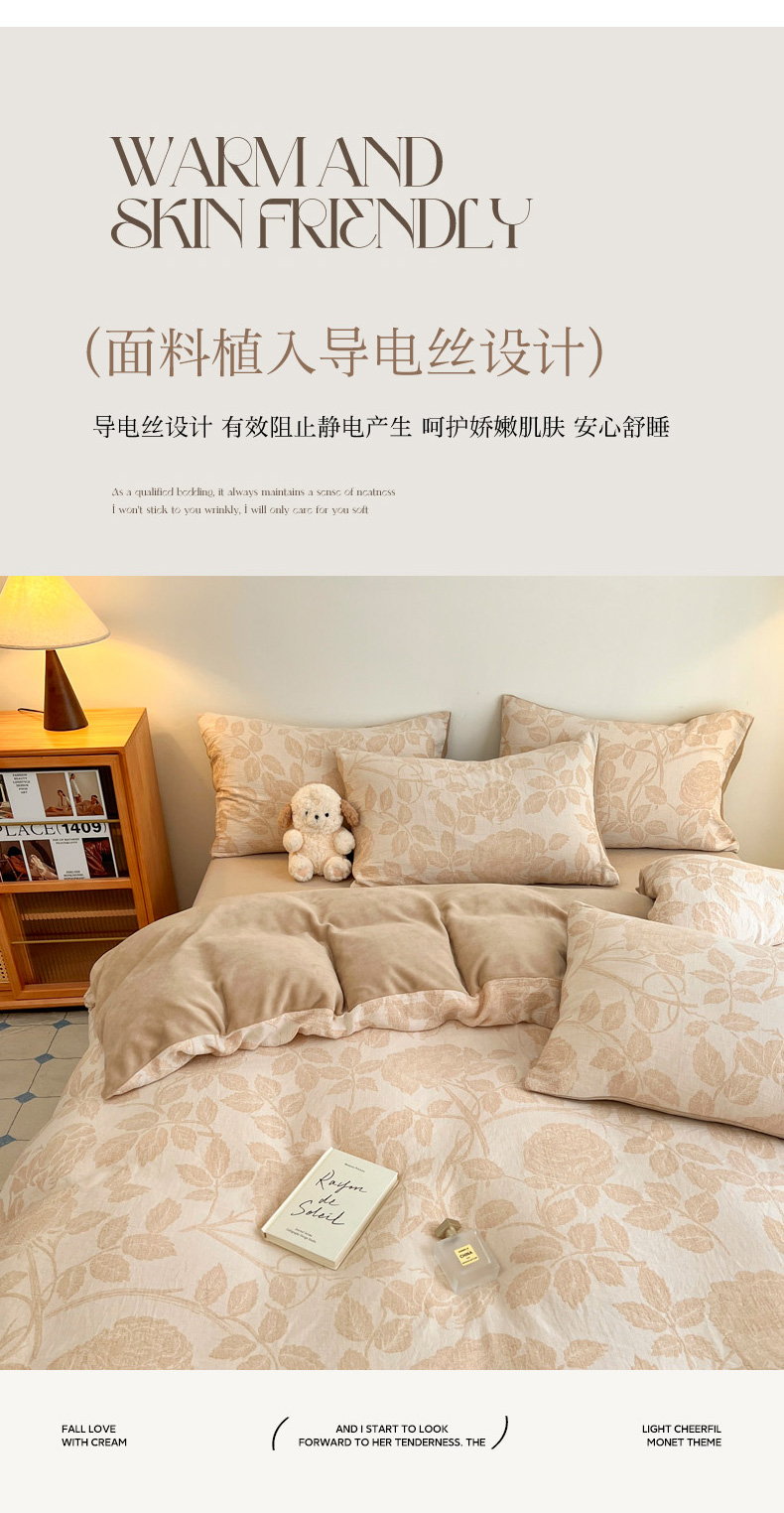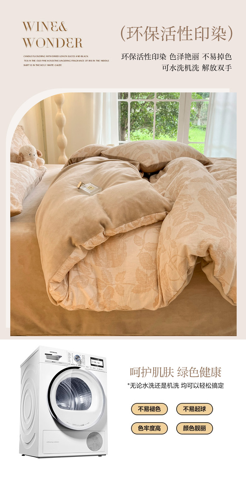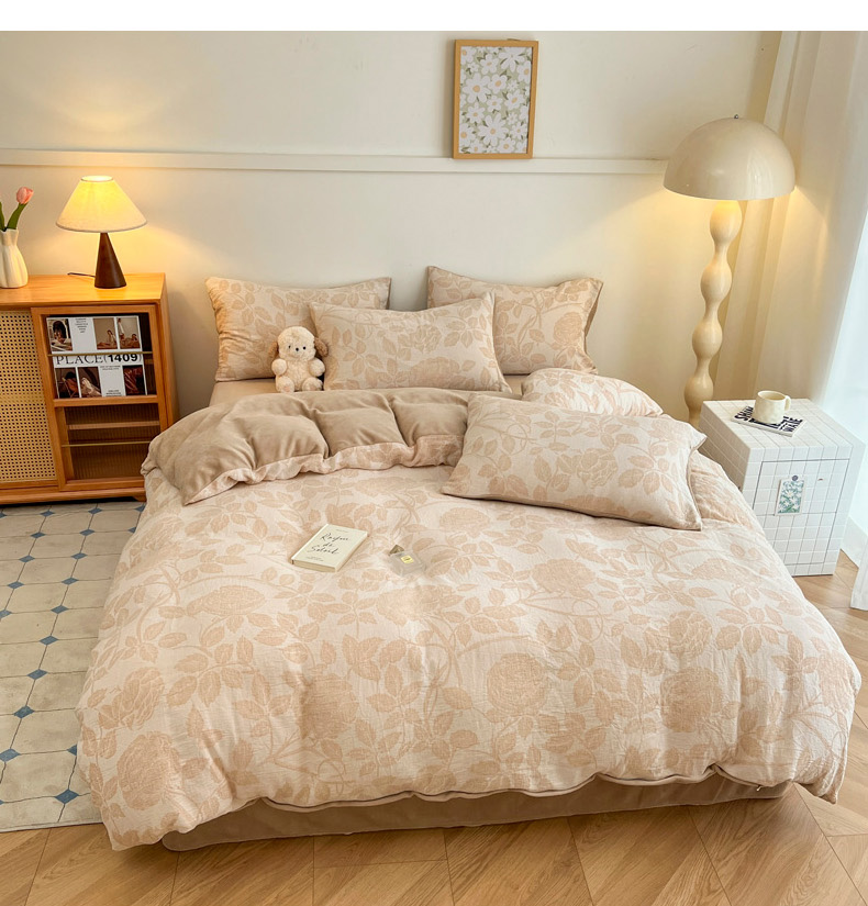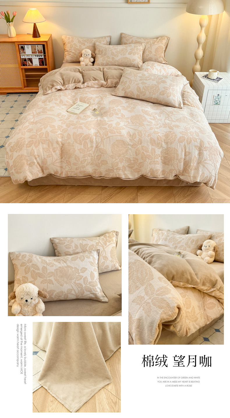 商品名称:柠馨 2024新款轻奢全棉三层纱牛奶绒棉绒加厚保暖四件套 棉绒-望月咖