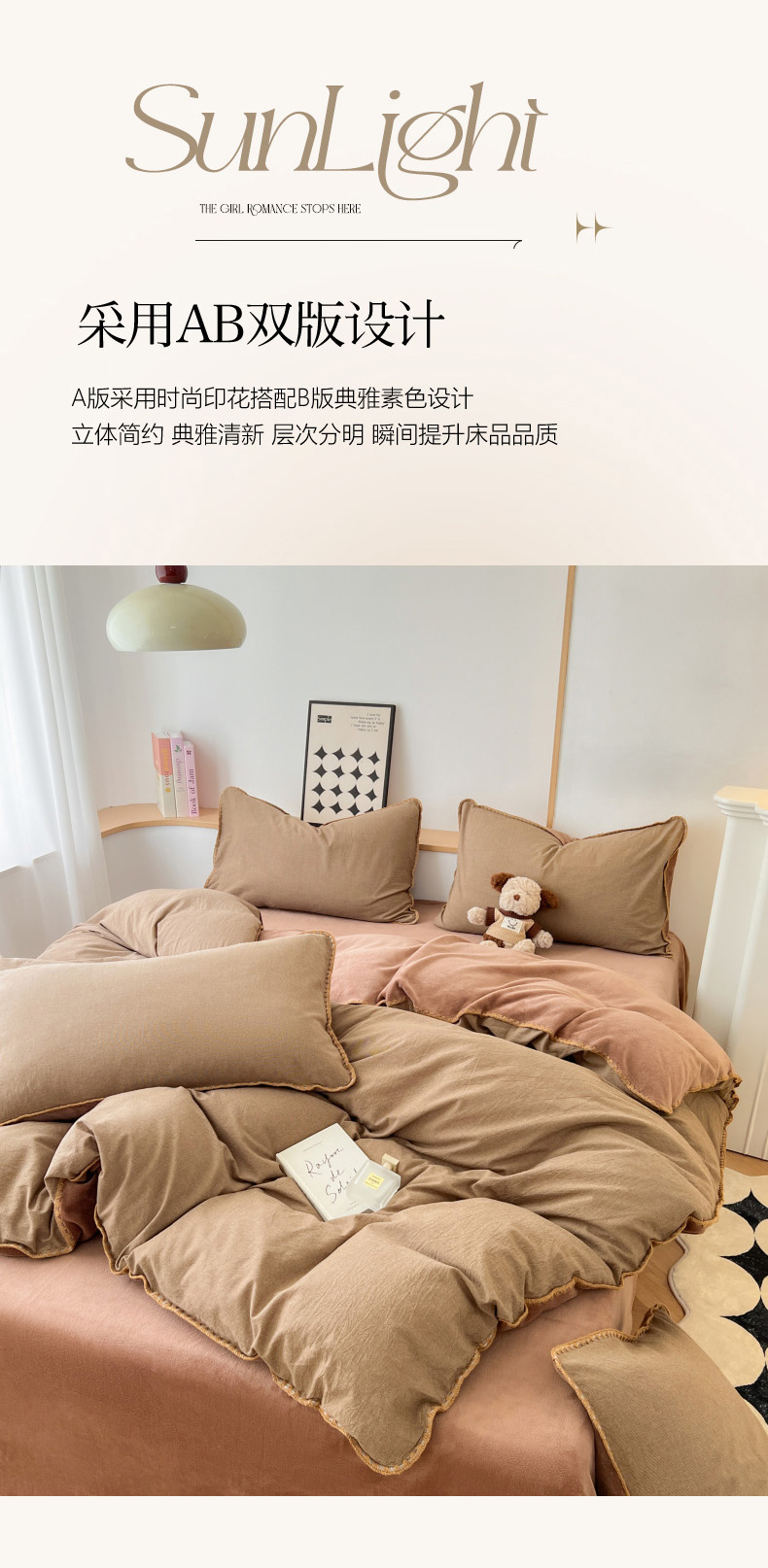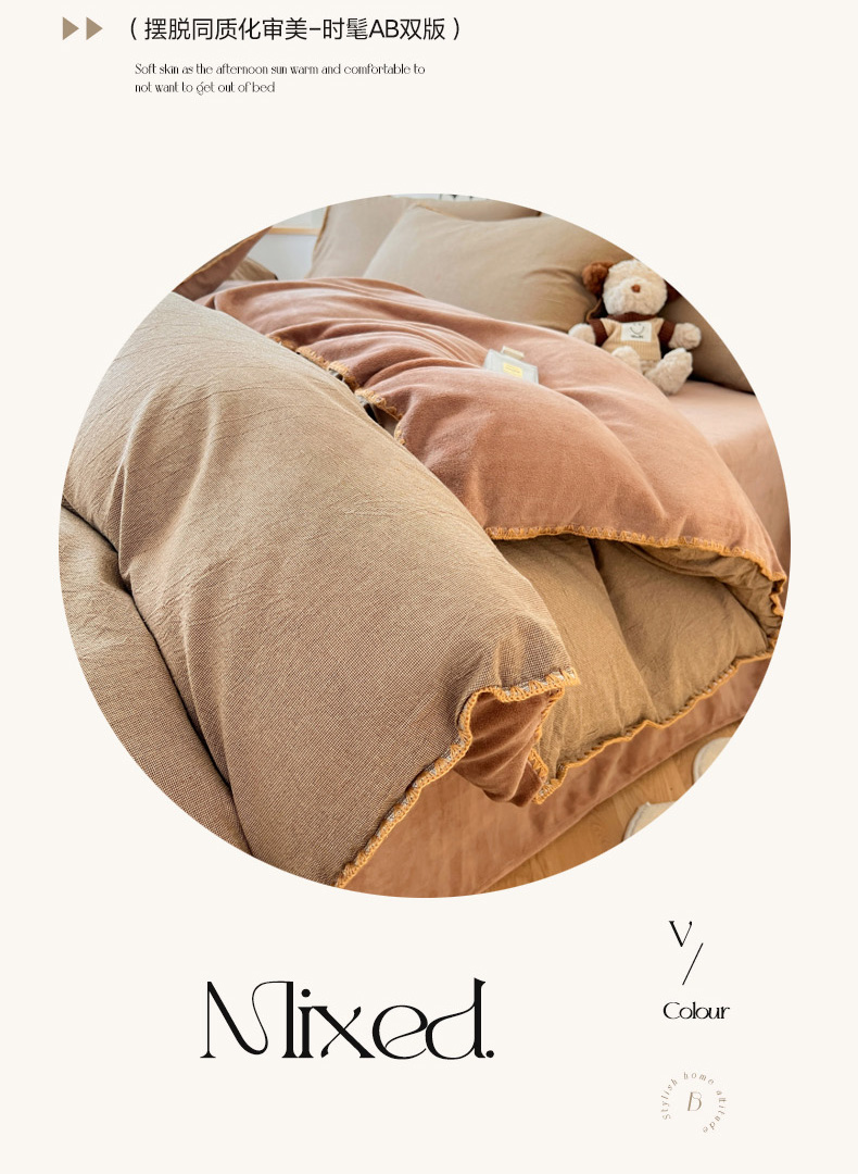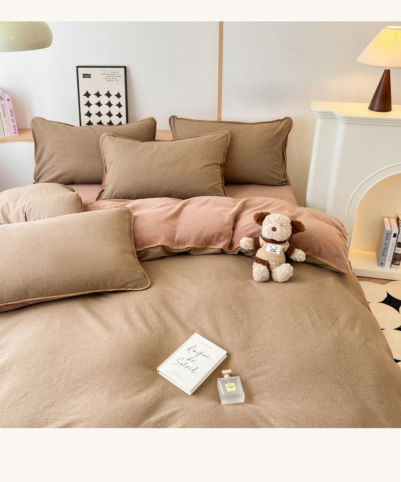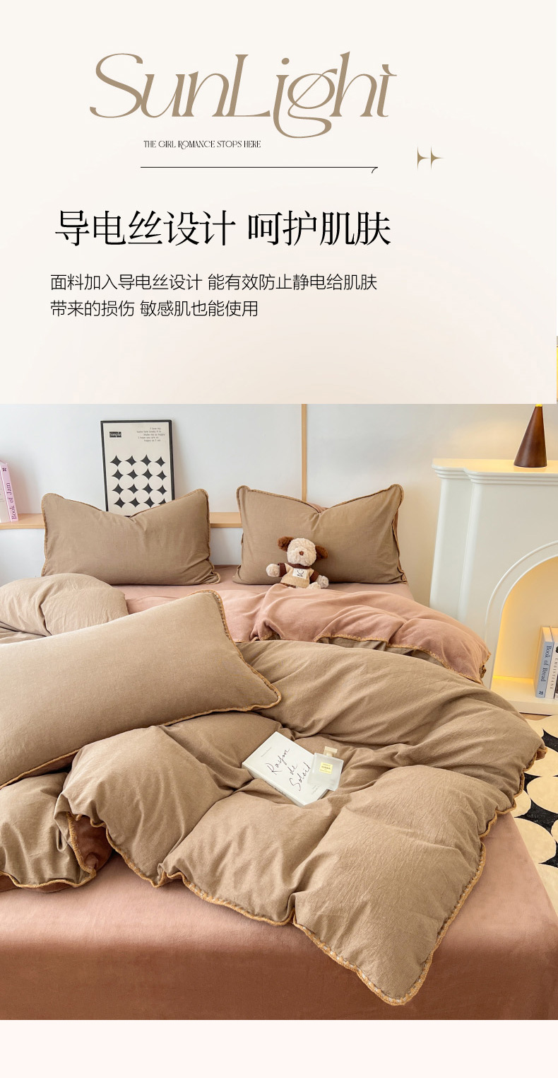 柠馨 2024新款简约时尚全棉牛奶绒棉绒四件套 棉绒肌理咖
