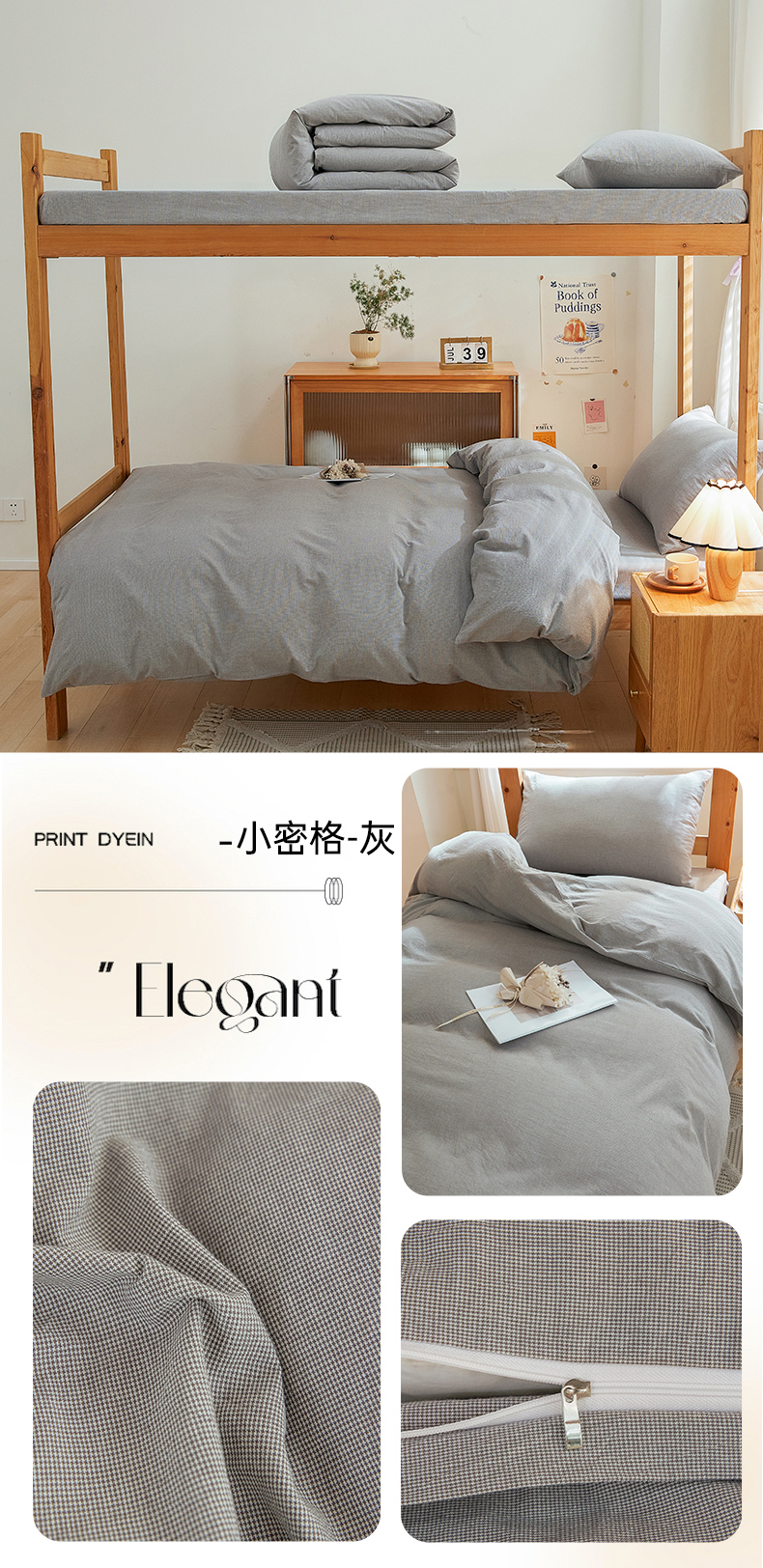 商品名称:棉小二 2024新款全棉水洗棉学生宿舍三四件套 小密格-灰