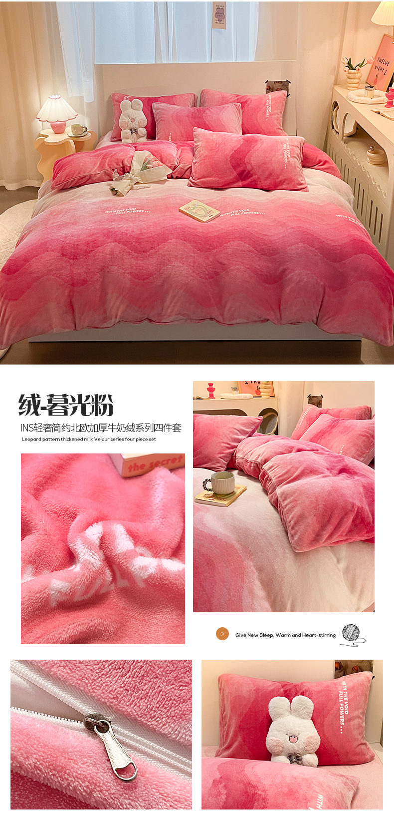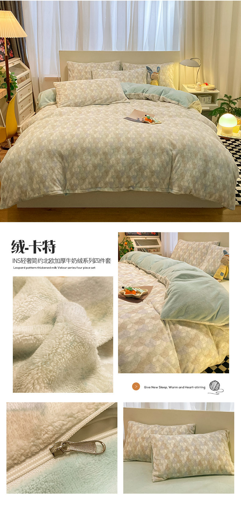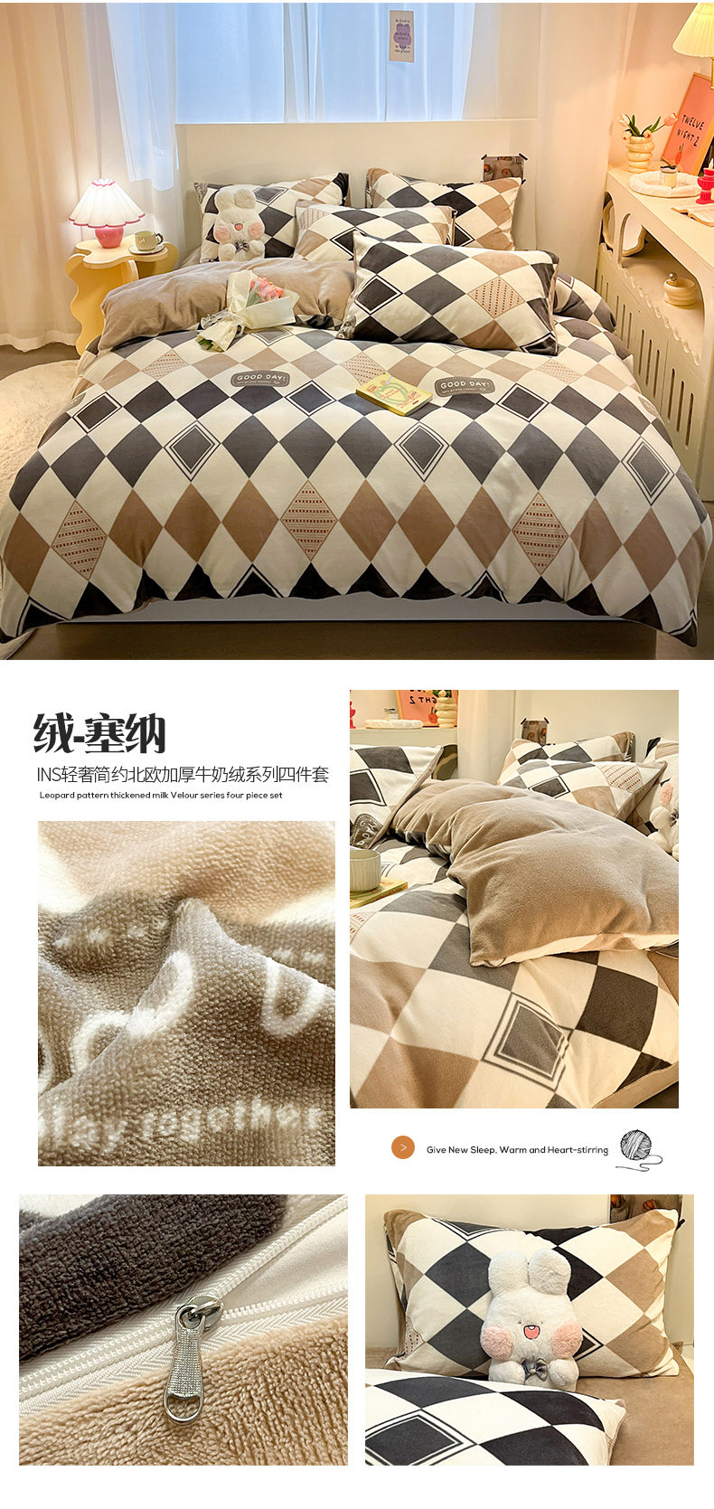 (总)2024新款时尚高级经典轻奢北欧简约加厚200克牛奶绒四件套