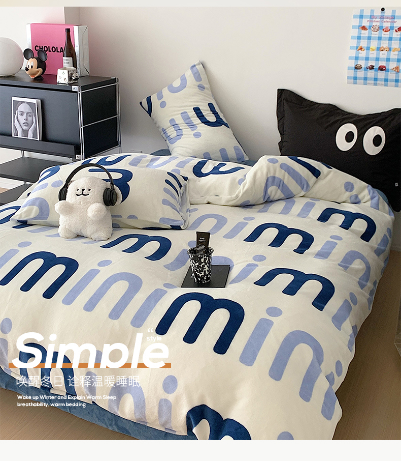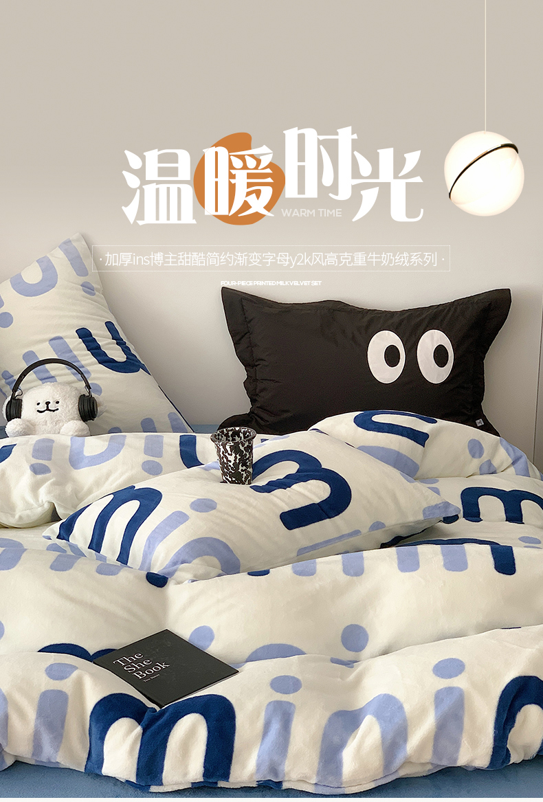 商品名称:(总)2024新款时尚高级经典轻奢北欧简约加厚200克牛奶绒四件套