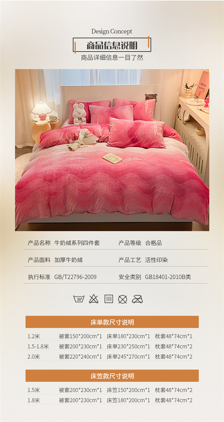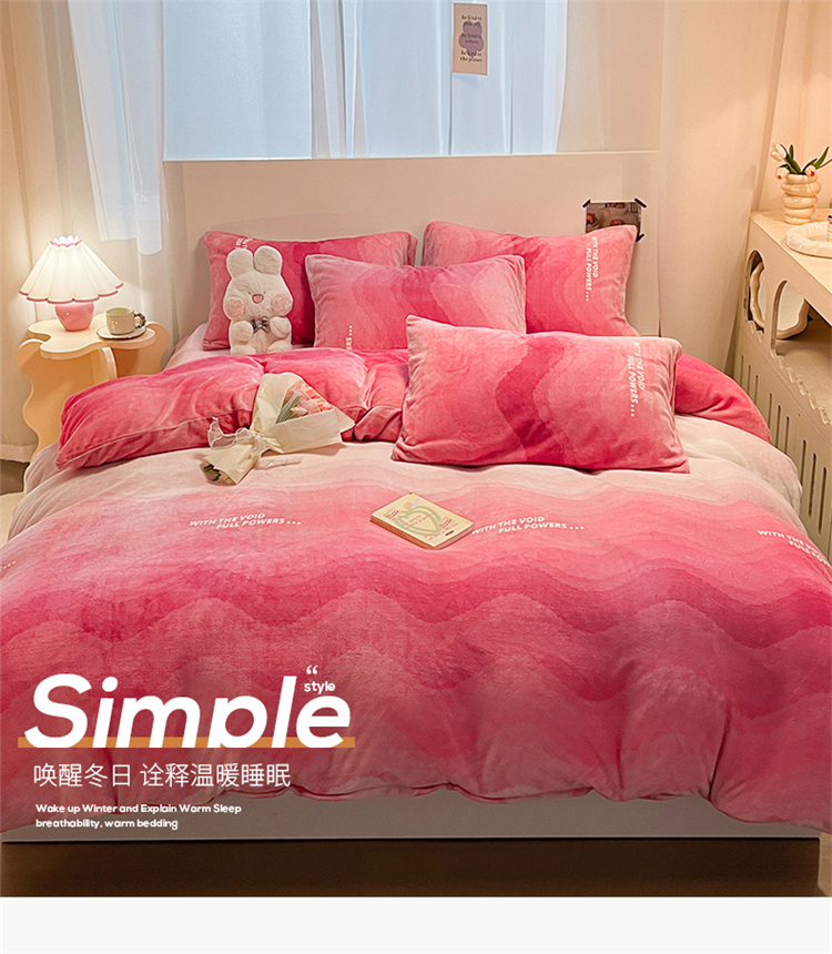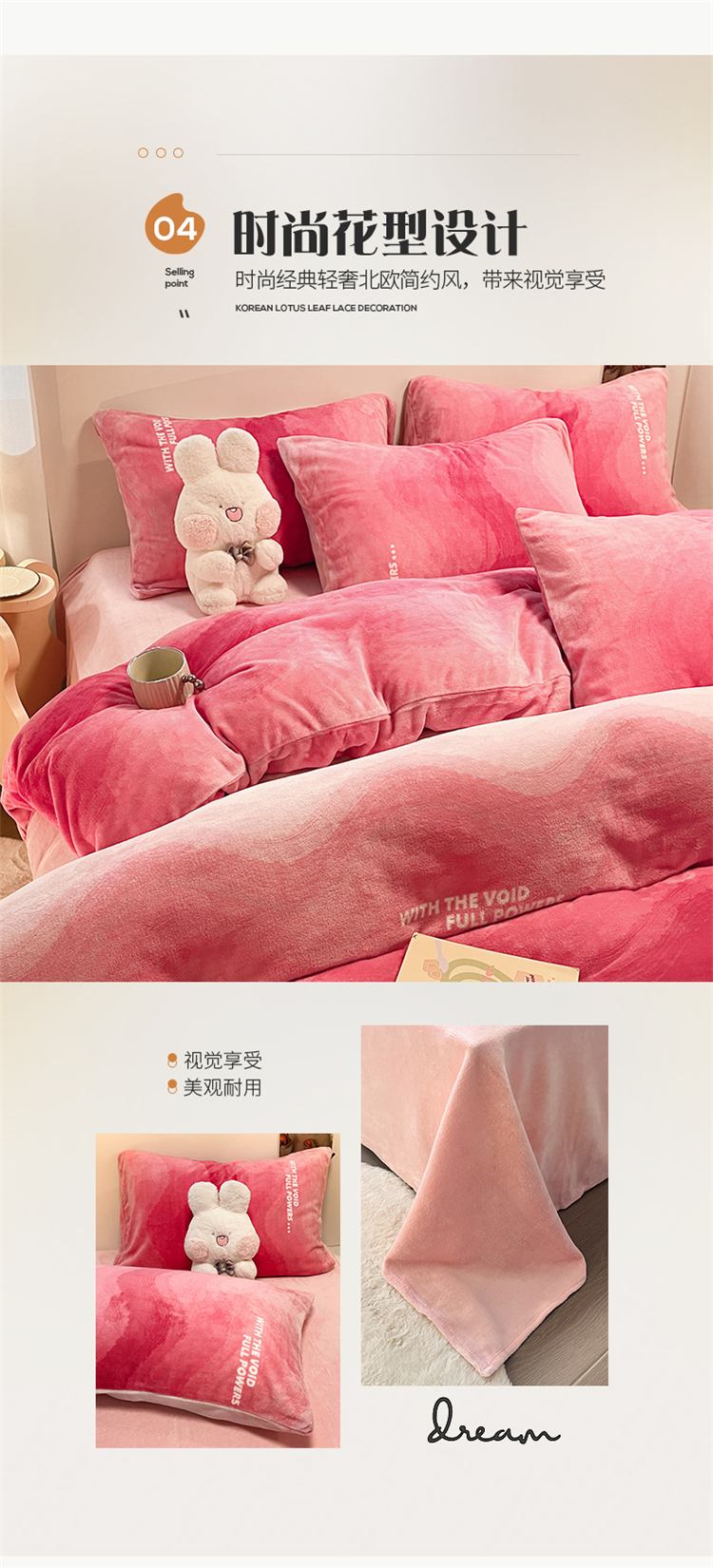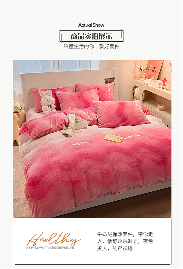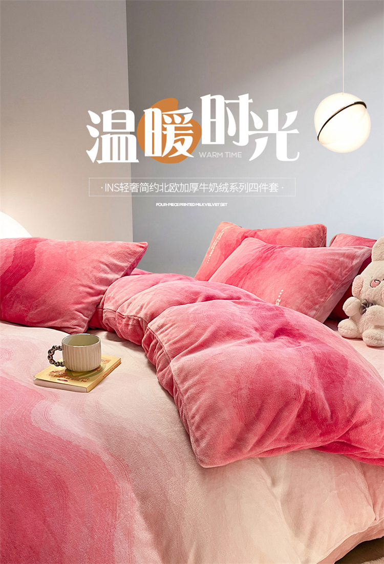 商品名称:2024新款时尚高级经典轻奢北欧简约加厚200克牛奶绒四件套 绒-暮光粉
