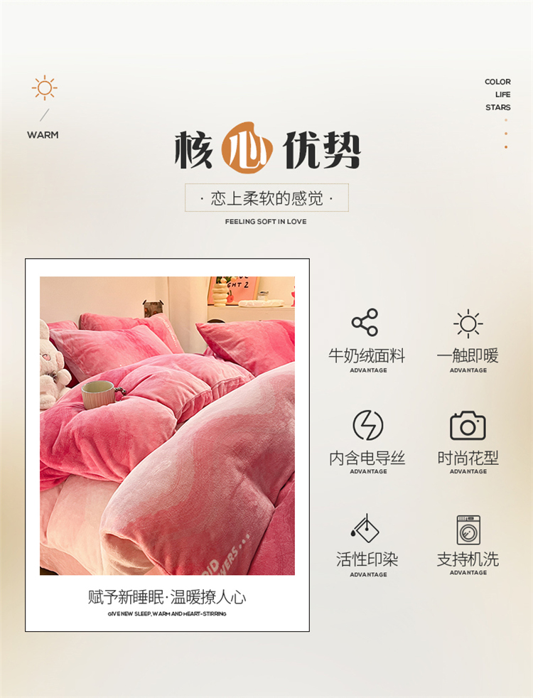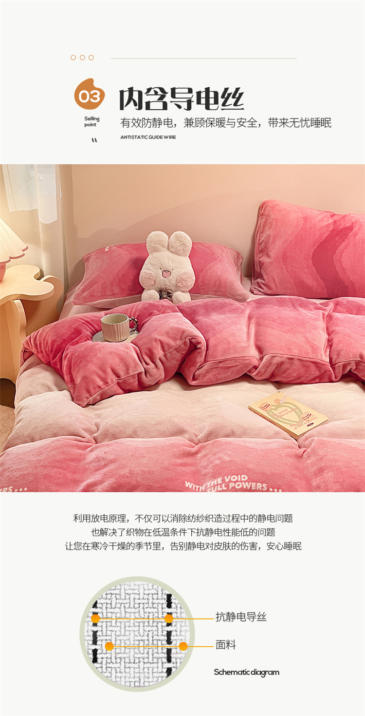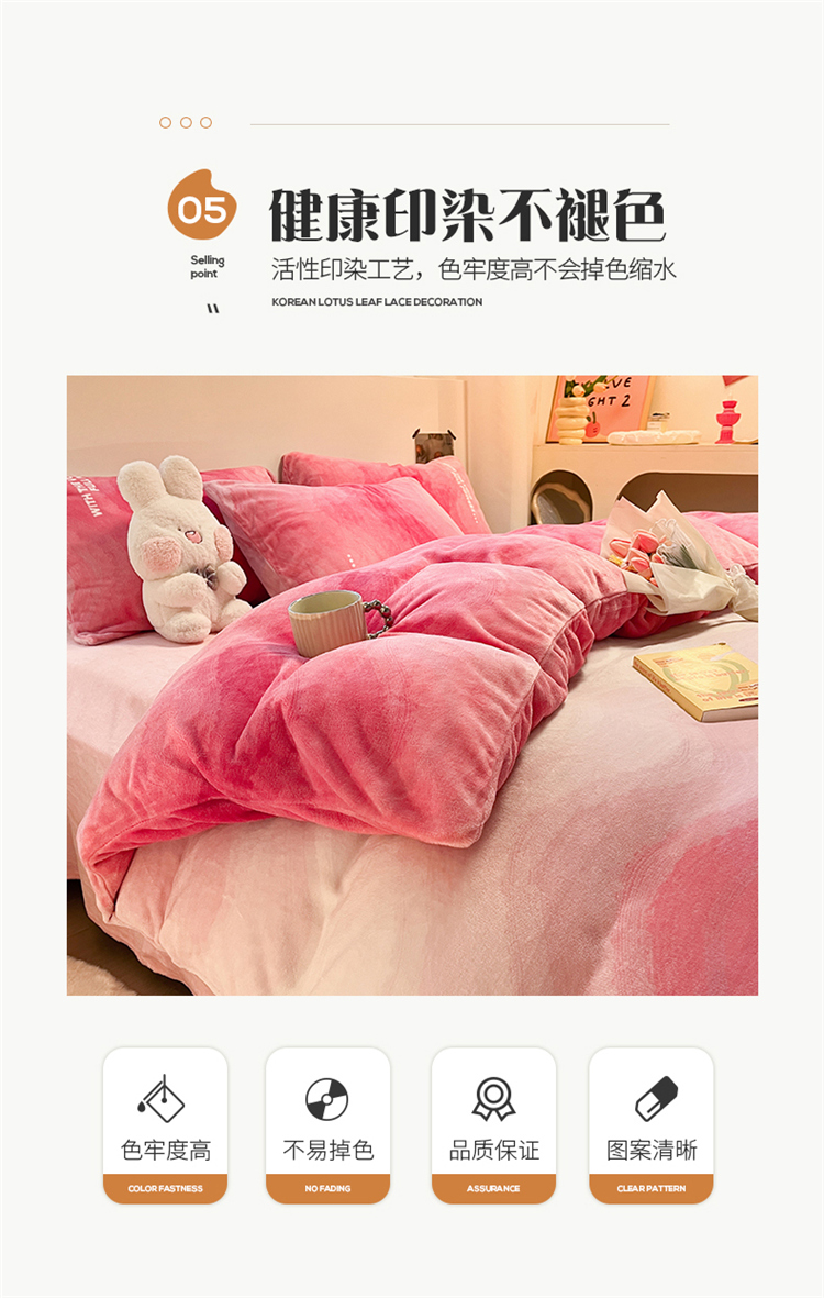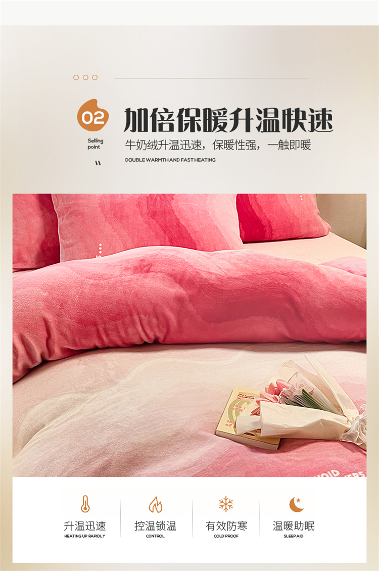 商品名称:2024新款时尚高级经典轻奢北欧简约加厚200克牛奶绒四件套 绒-暮光粉