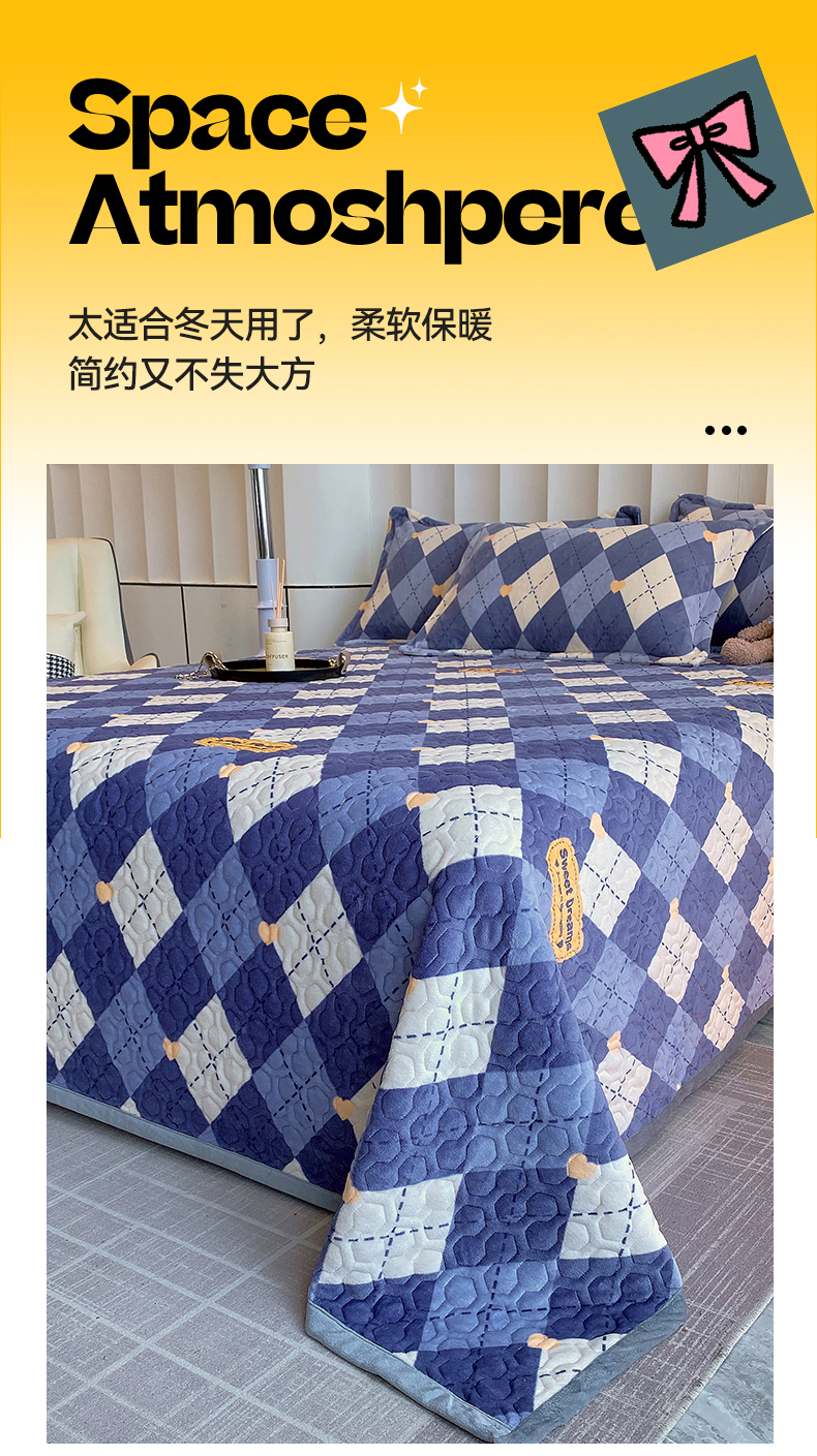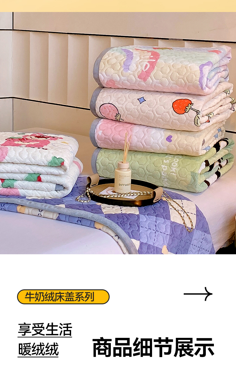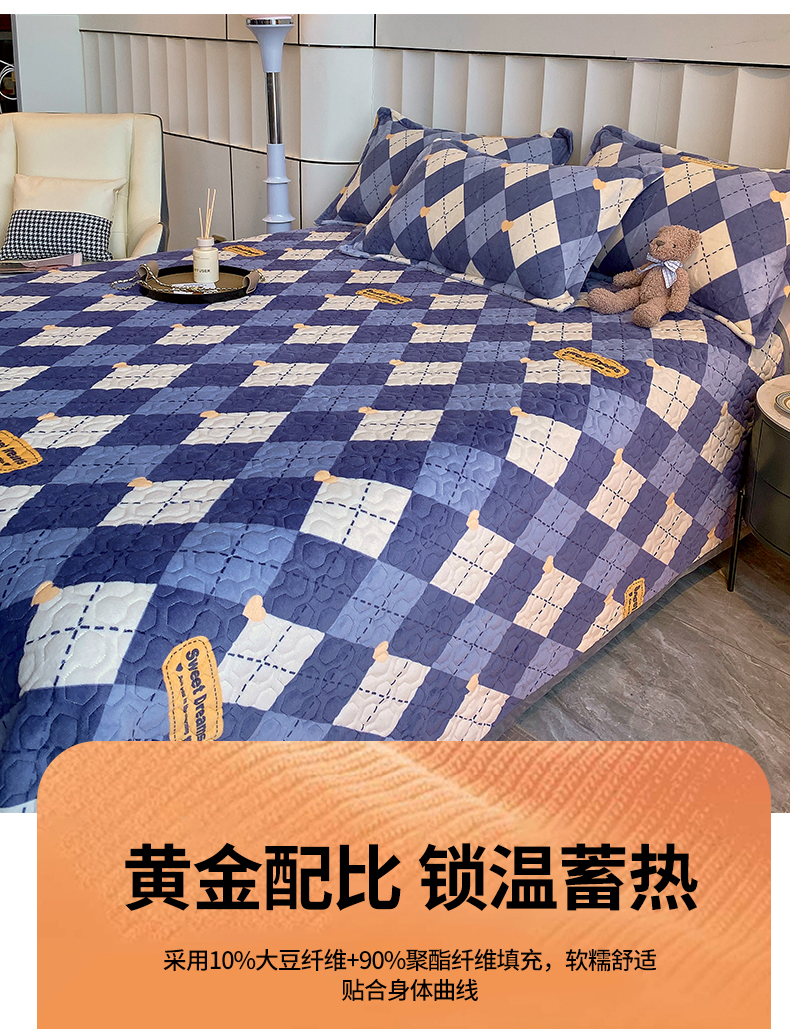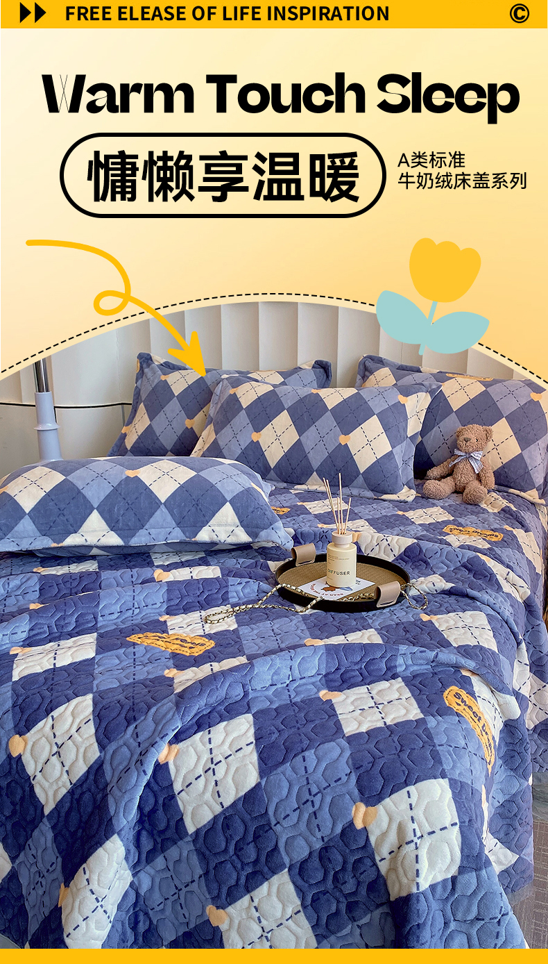 • 91家纺网 家纺一手货源 找家纺 凯儿 2025新款A类牛奶绒印花单床盖三件套 英伦时光