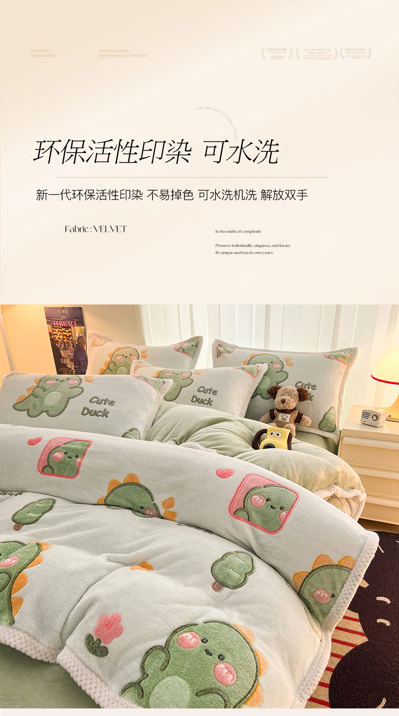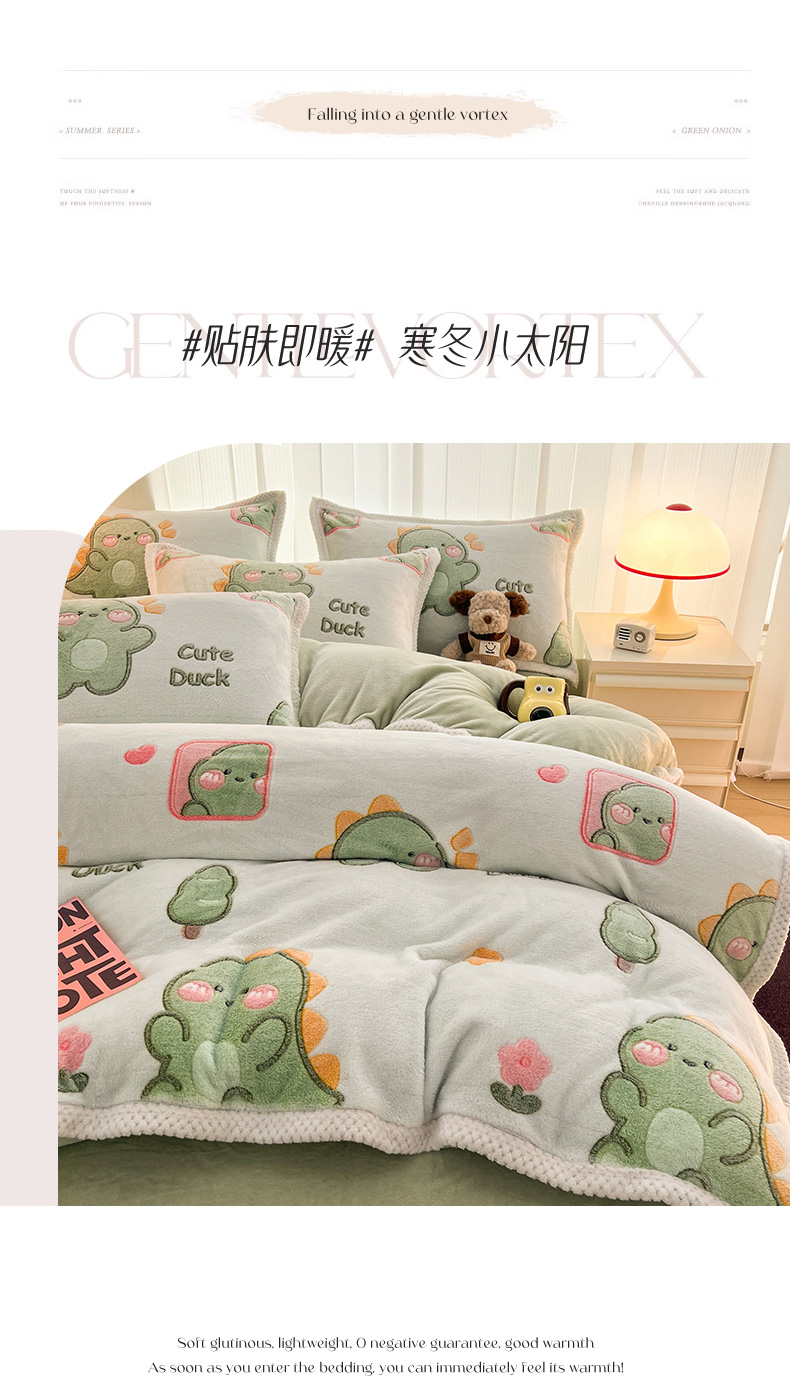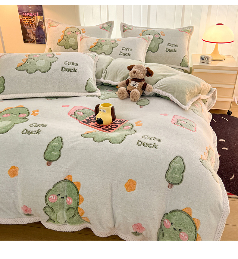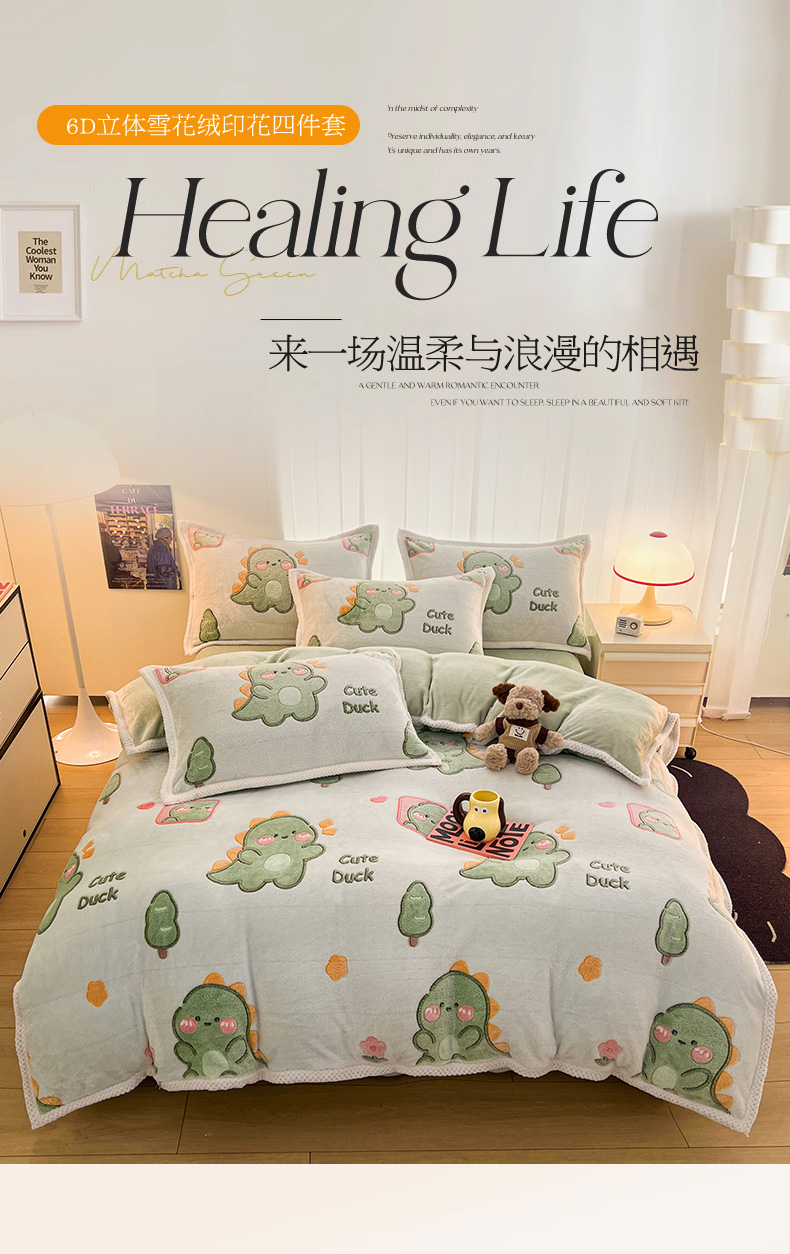 当前位置: 91家纺网 > 商品网购 > 床品套件 > 四件套 > 其它四件套 > 倾慕家纺 2024新款加厚保暖6D立体雪花绒系列-四件套 绿色小龙