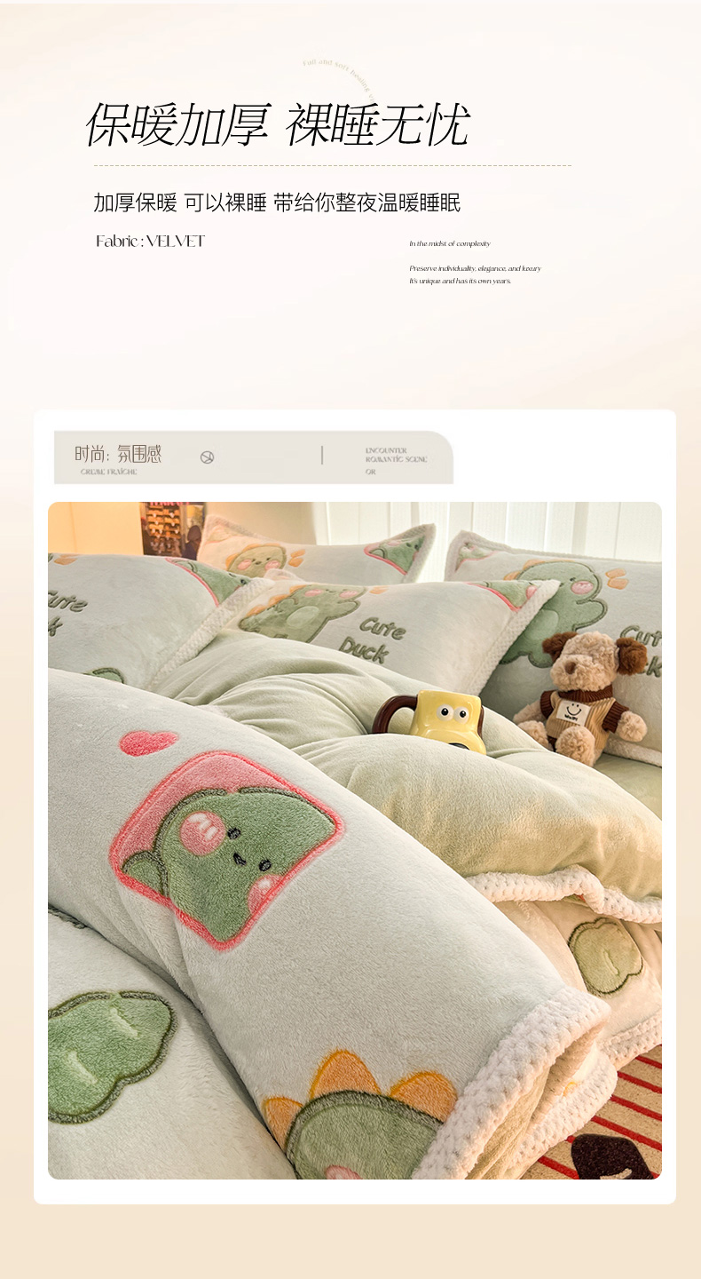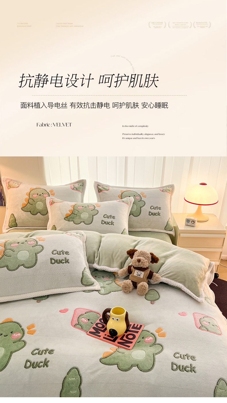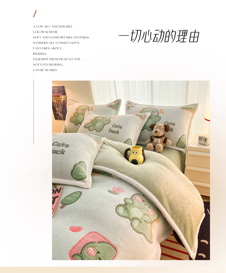 当前位置: 91家纺网 > 商品网购 > 床品套件 > 四件套 > 其它四件套 > 倾慕家纺 2024新款加厚保暖6D立体雪花绒系列-四件套 绿色小龙