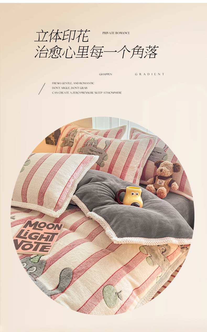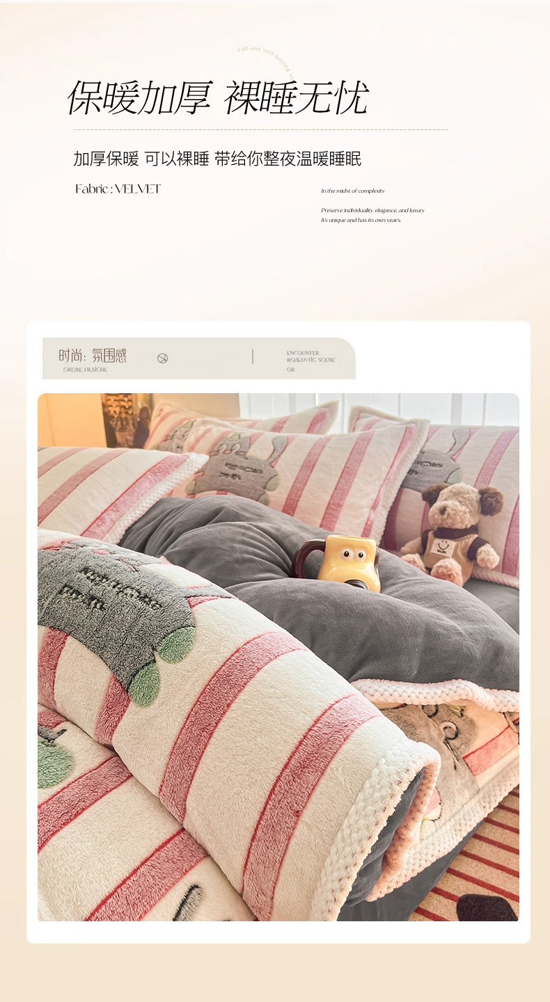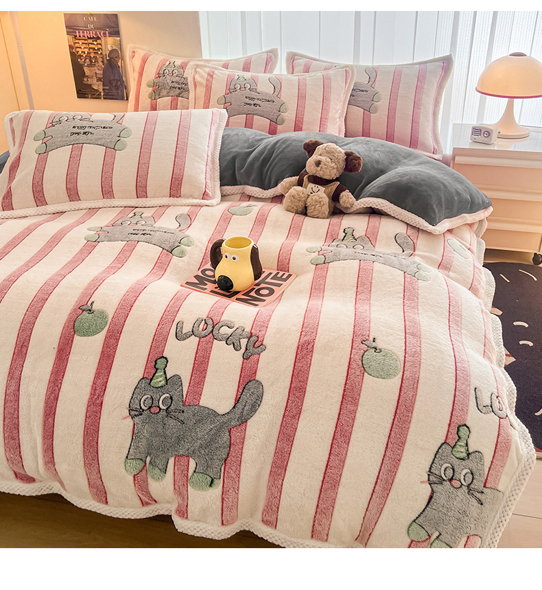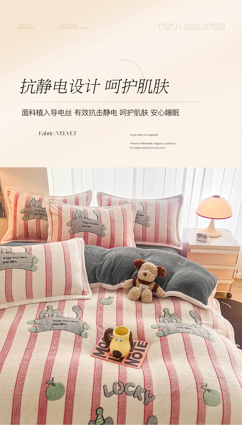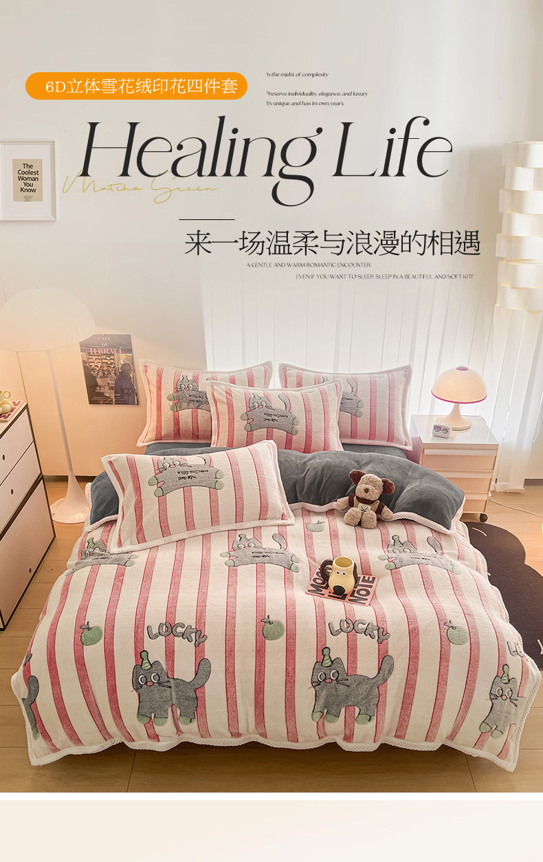 当前位置: 91家纺网 > 商品网购 > 床品套件 > 四件套 > 其它四件套 > 倾慕家纺 2024新款加厚保暖6D立体雪花绒系列-四件套 时尚猫咪
