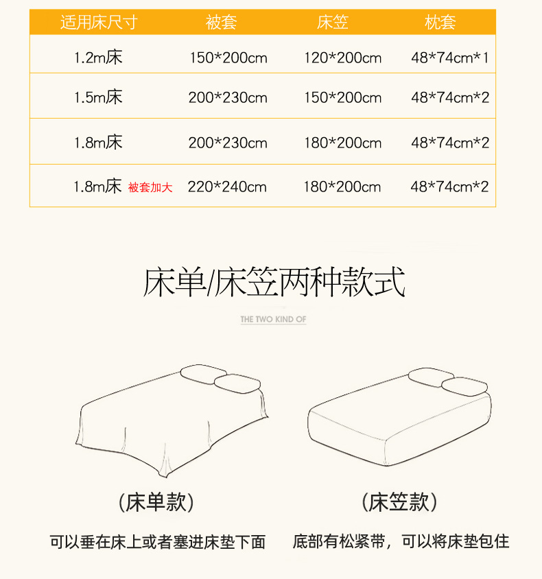 1.8m床笠款加大被套四件套 | ¥130.00 |