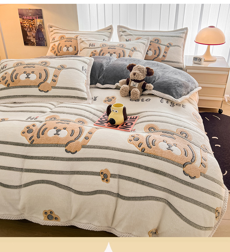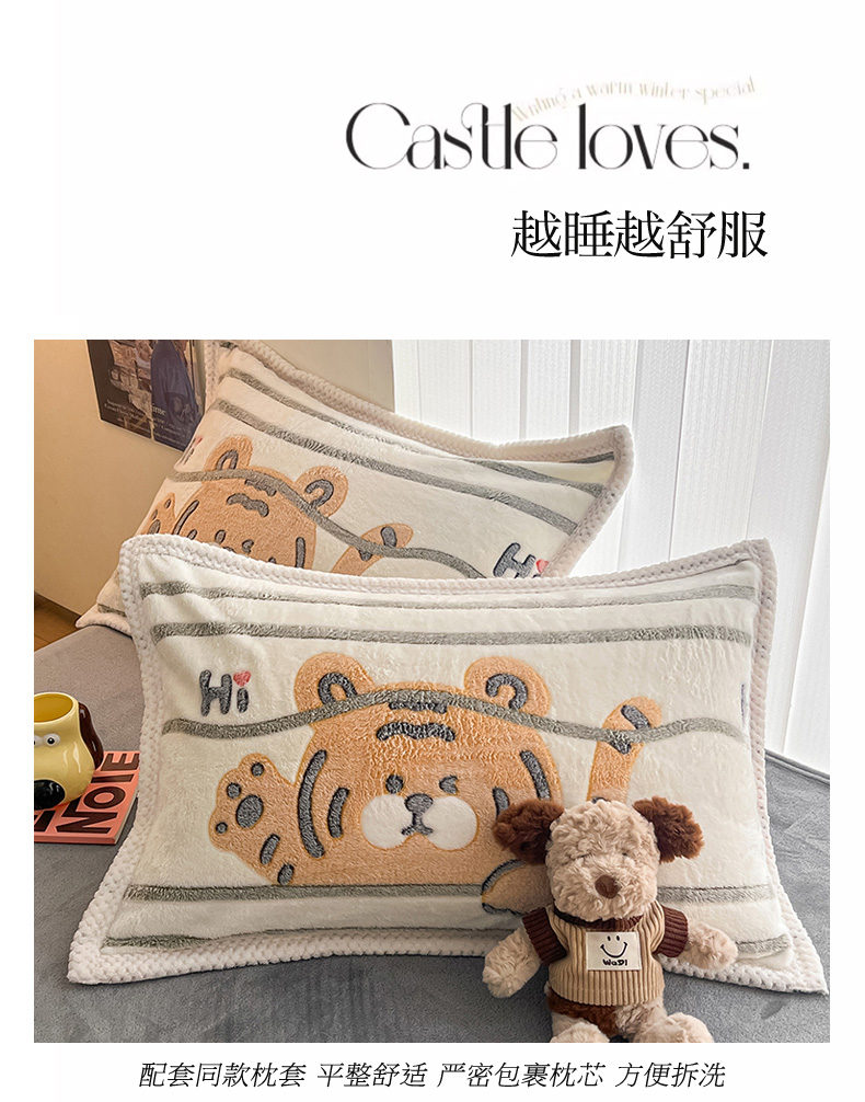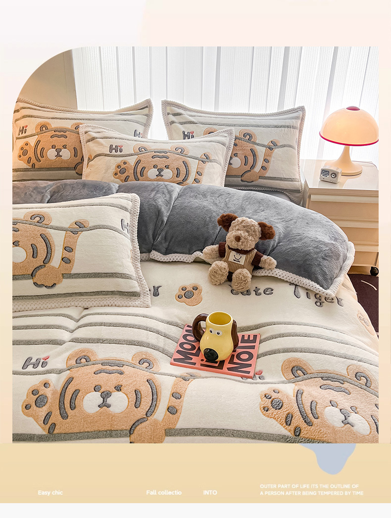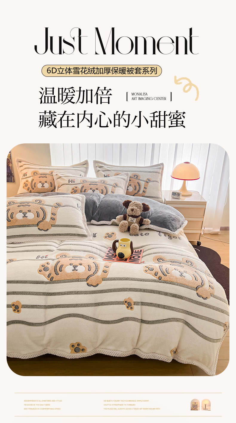 倾慕家纺 2024新款加厚保暖6D立体雪花绒系列-单被套 欢乐小虎