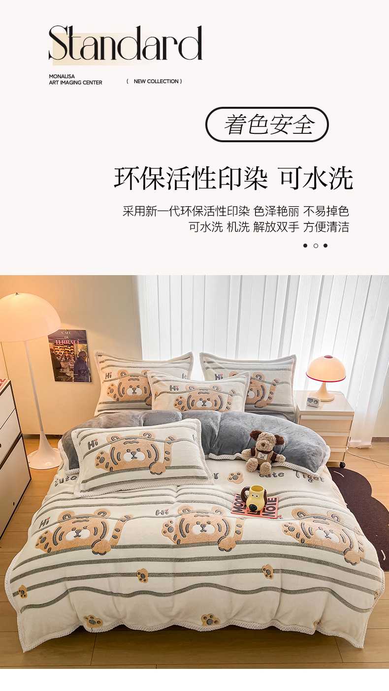 商品名称:倾慕家纺 2024新款加厚保暖6D立体雪花绒系列-单被套 欢乐小虎