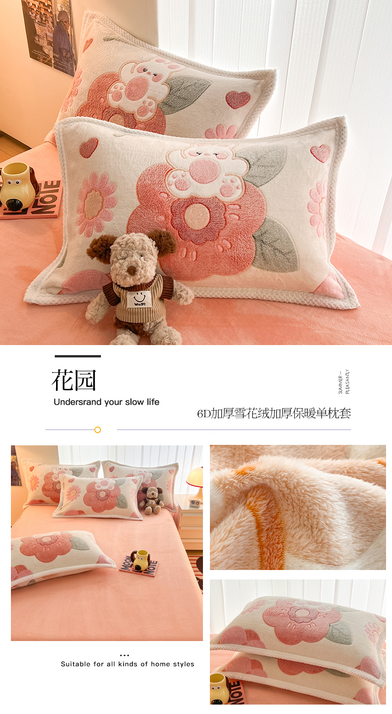 倾慕家纺 2024新款加厚保暖6D立体雪花绒系列-单枕套 北欧小熊