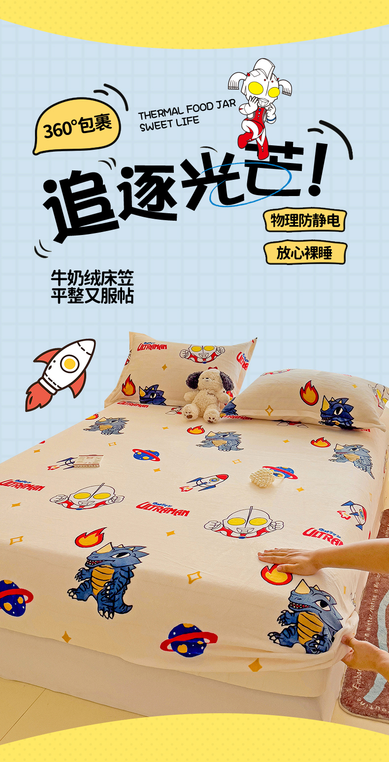 (总)名兮 2024新款经典奥特曼-三丽鸥高克重牛奶绒床笠