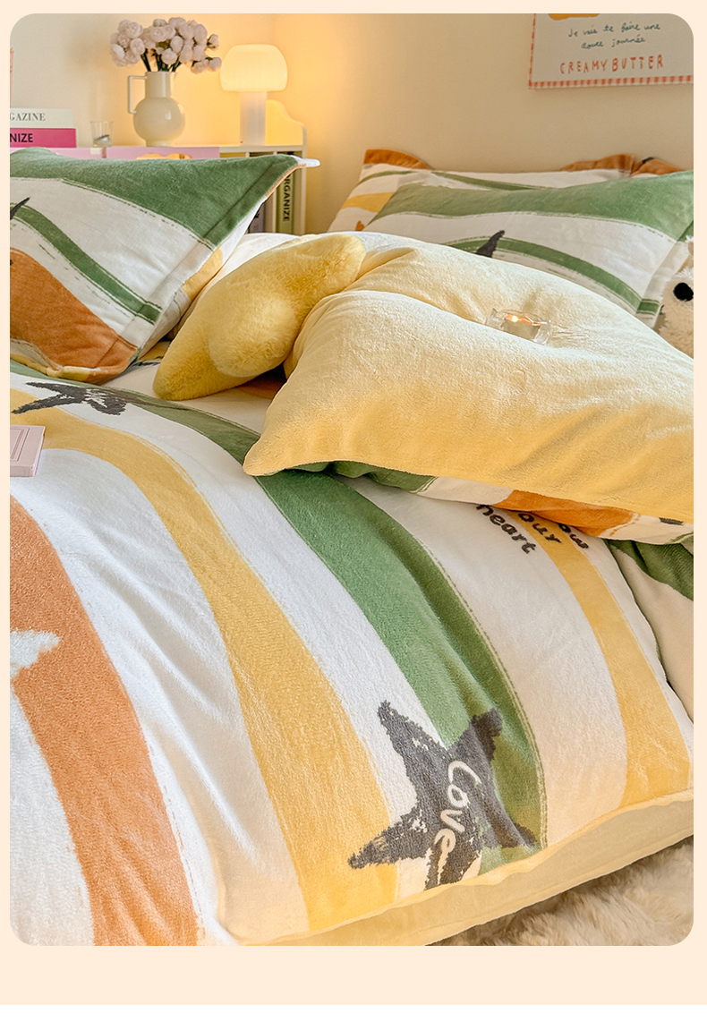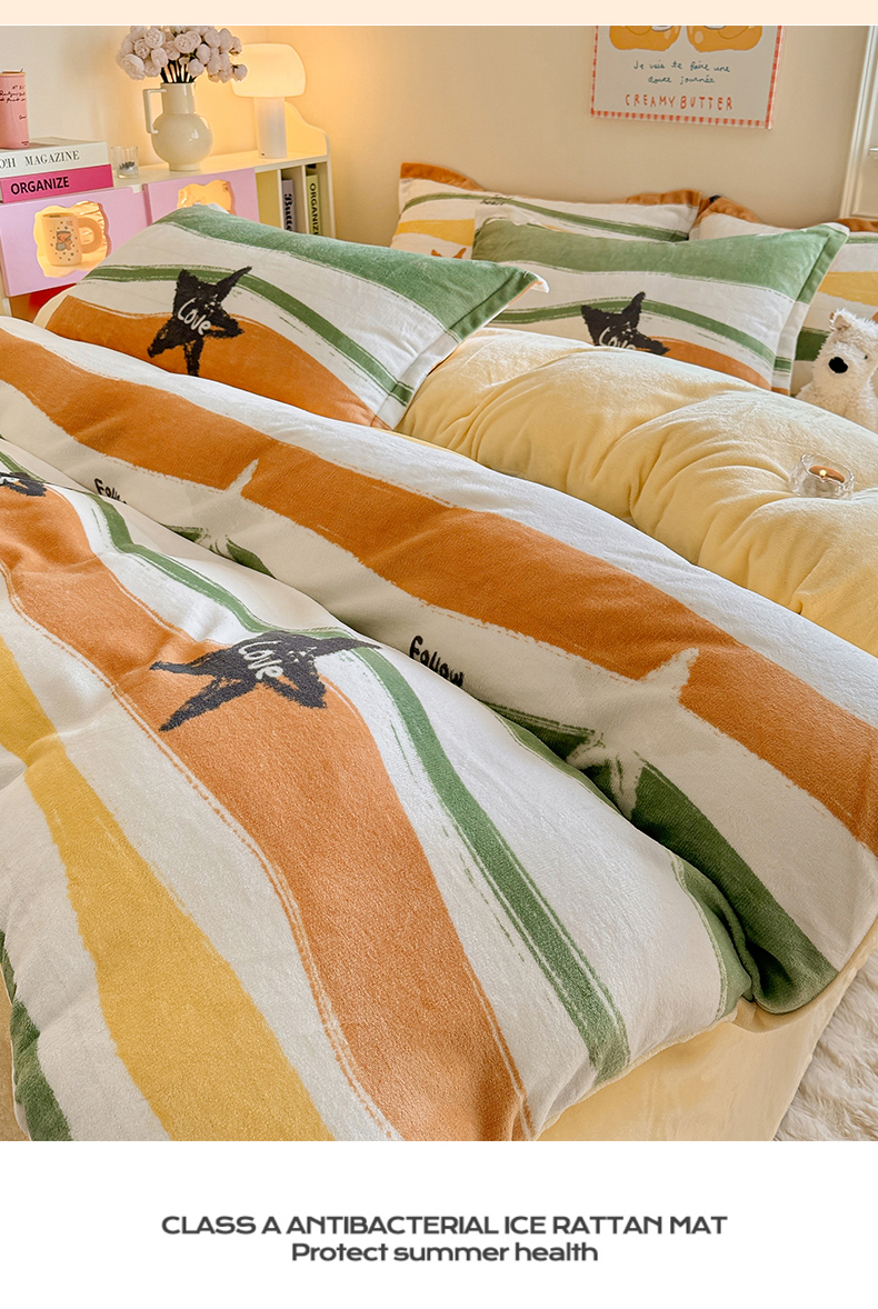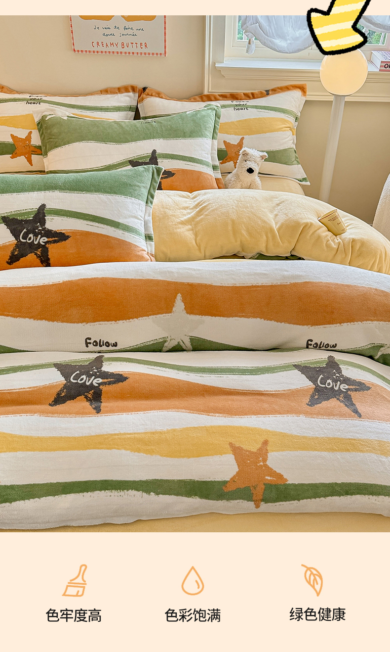 当前位置: 91家纺网 > 商品网购 > 床品套件 > 四件套 > 牛奶绒四件套 > 名兮 2024新款卡通时尚风高克重牛奶绒四件套 繁星