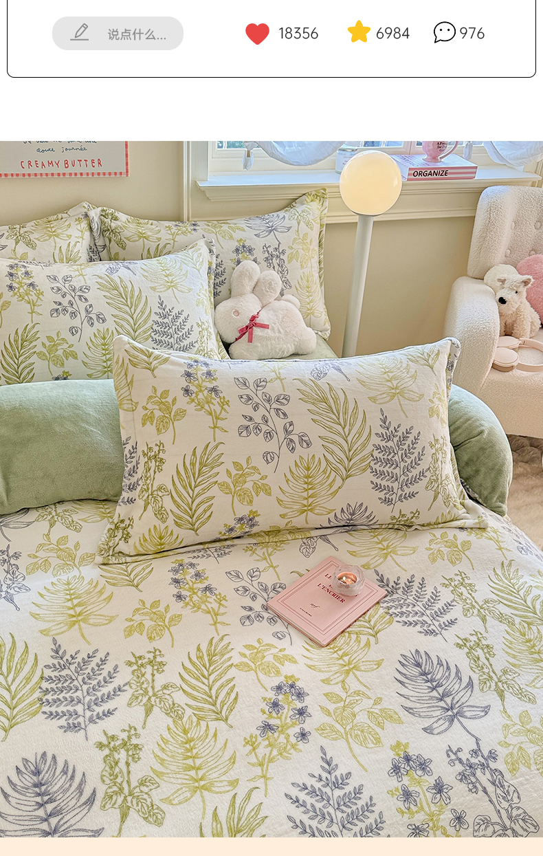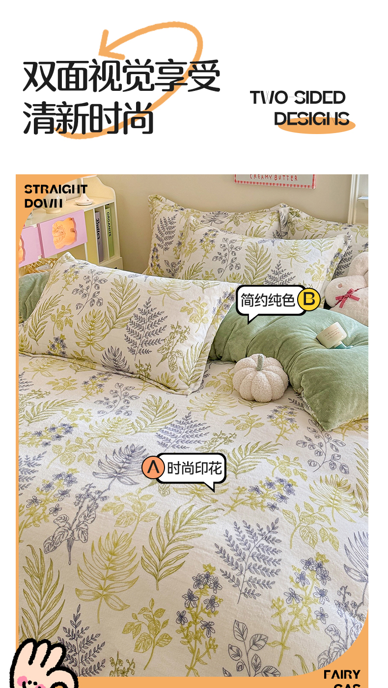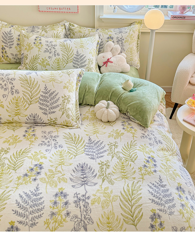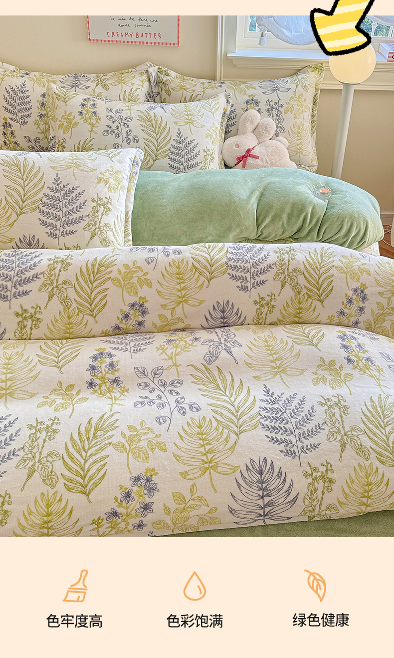 当前位置: 91家纺网 > 商品网购 > 床品套件 > 四件套 > 牛奶绒四件套 > 名兮 2024新款卡通时尚风高克重牛奶绒四件套 清新物语