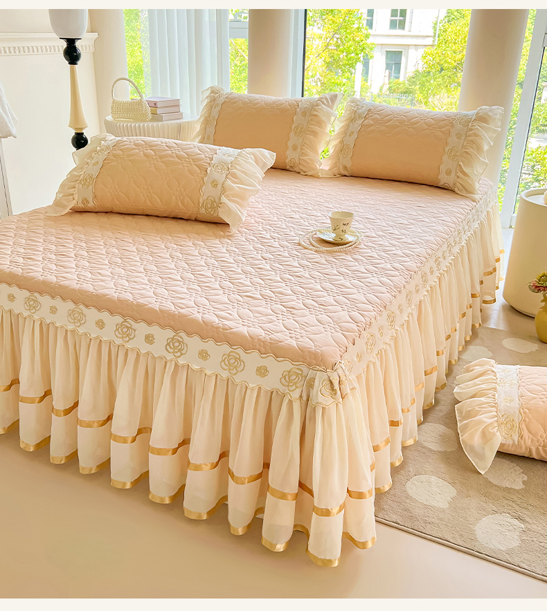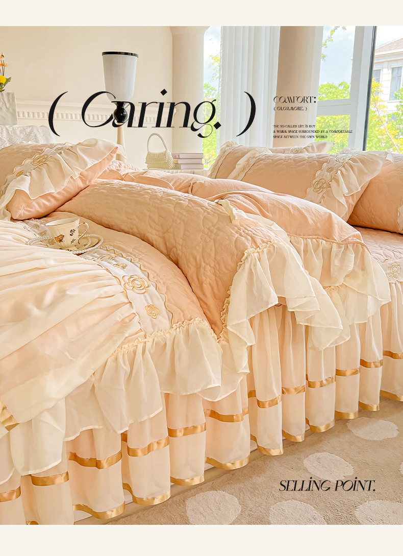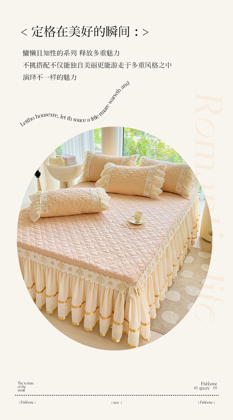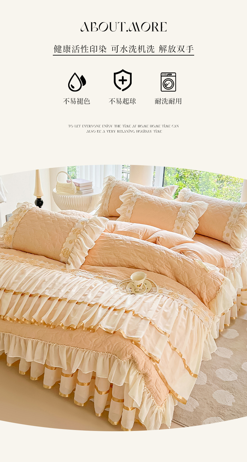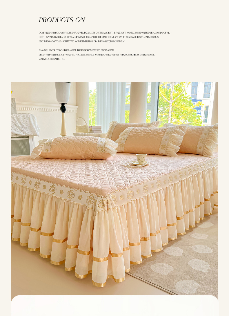 当前位置: 91家纺网 > 商品网购 > 床品套件 > 四件套 > 其它四件套 > 罗艺轩 2024新款公主风水洗棉夹棉床裙款四件套-花蔓花蔓-香槟