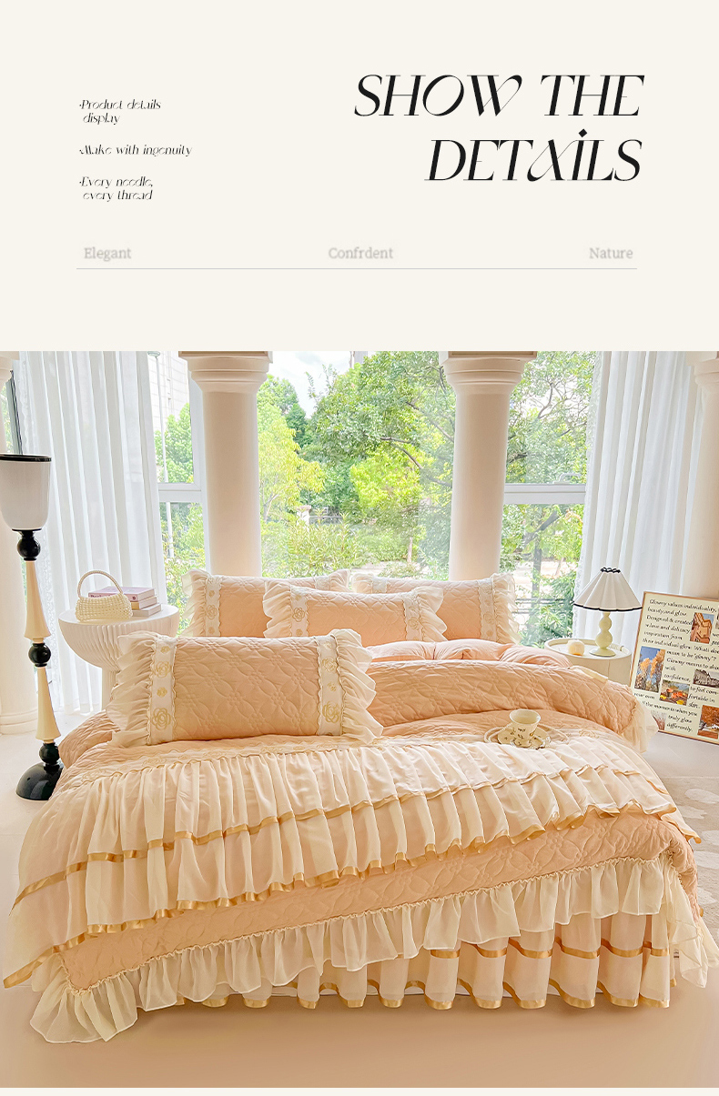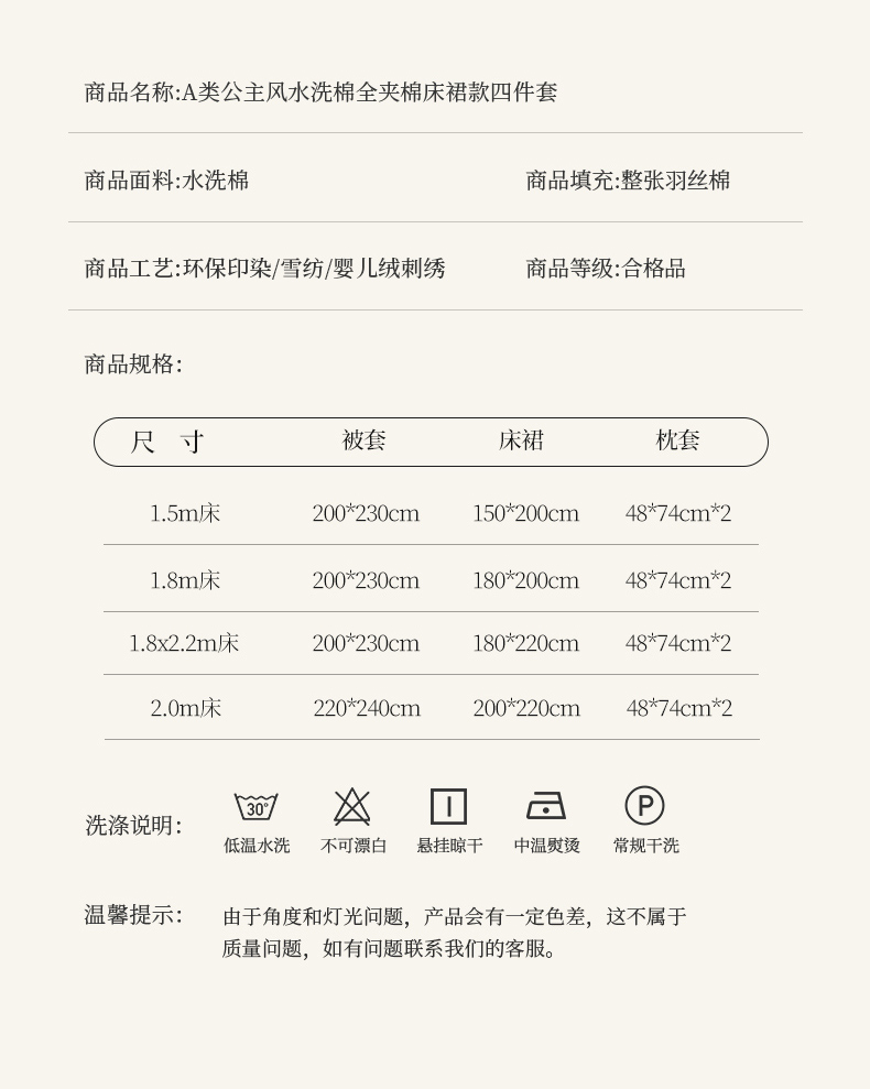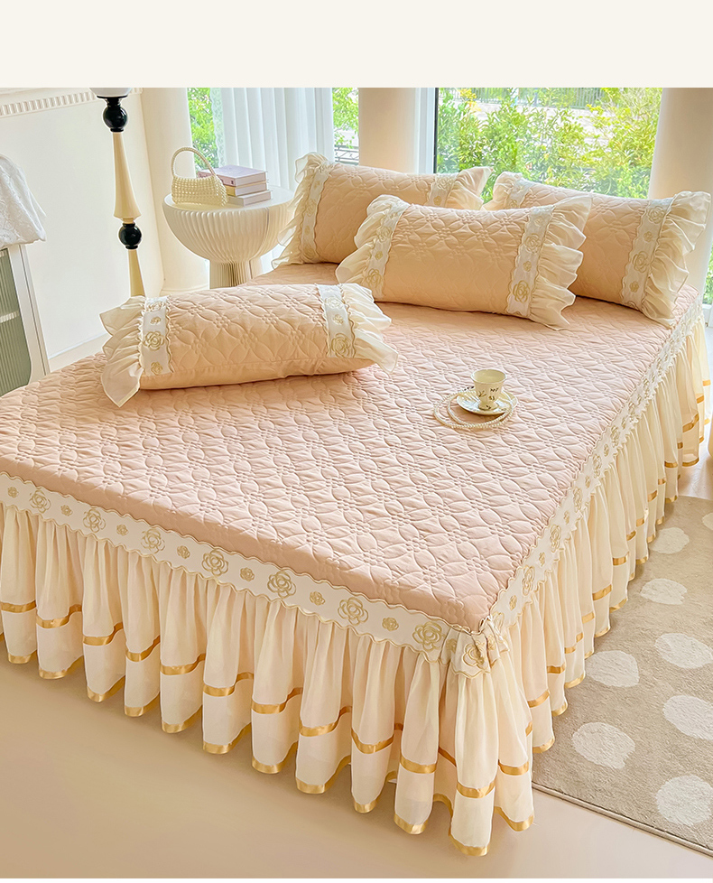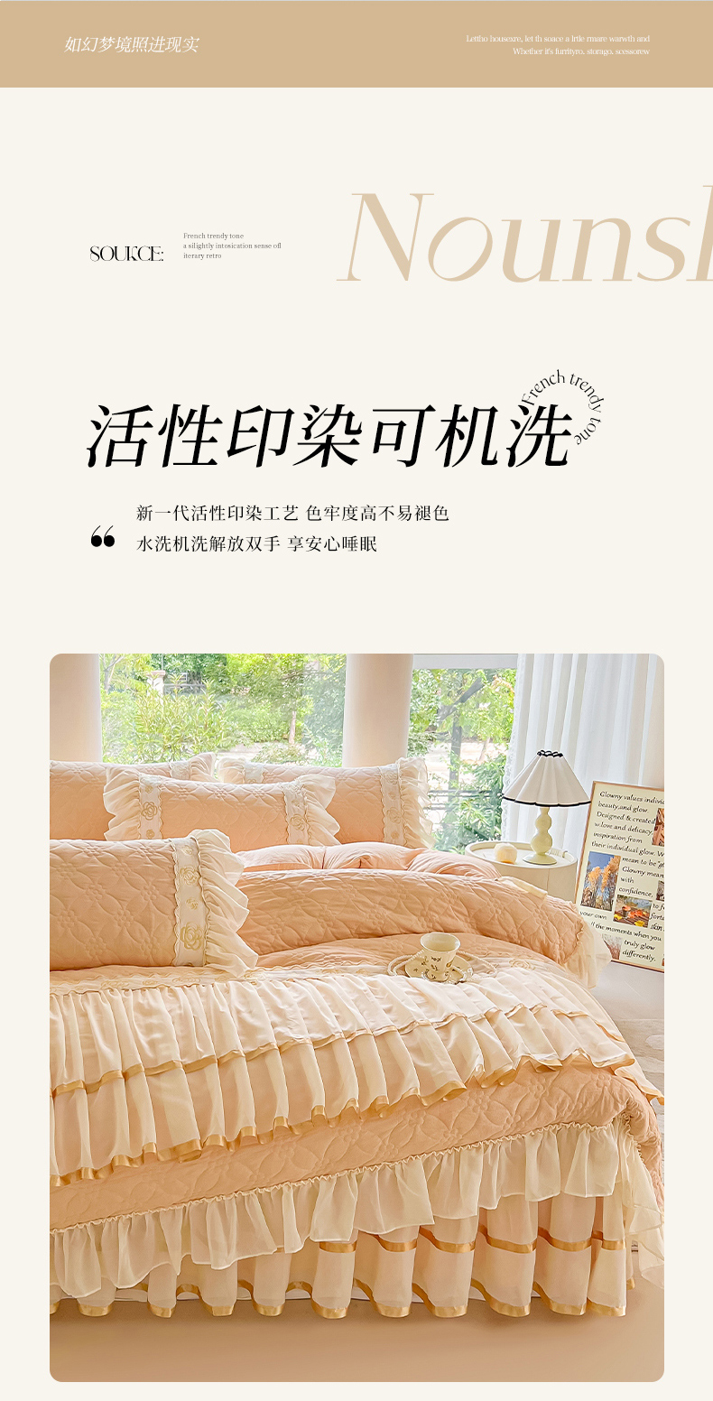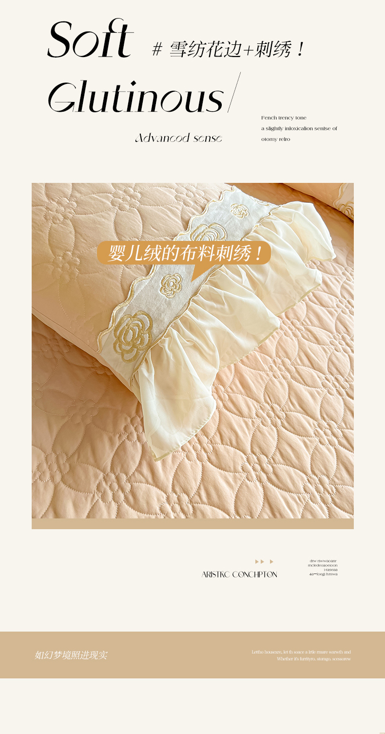 当前位置: 91家纺网 > 商品网购 > 床品套件 > 四件套 > 其它四件套 > 罗艺轩 2024新款公主风水洗棉夹棉床裙款四件套-花蔓花蔓-香槟