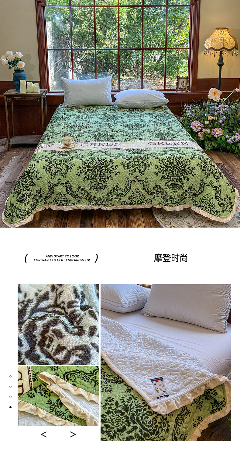 商品名称:悦织湾家纺 2025新款印花牛奶绒花边夹棉床盖 图腾