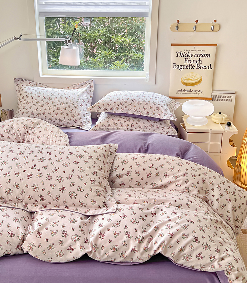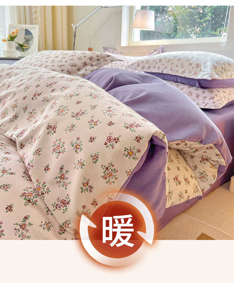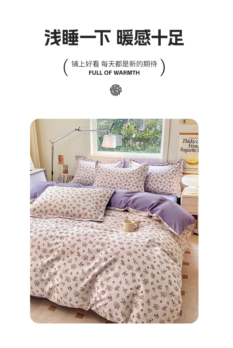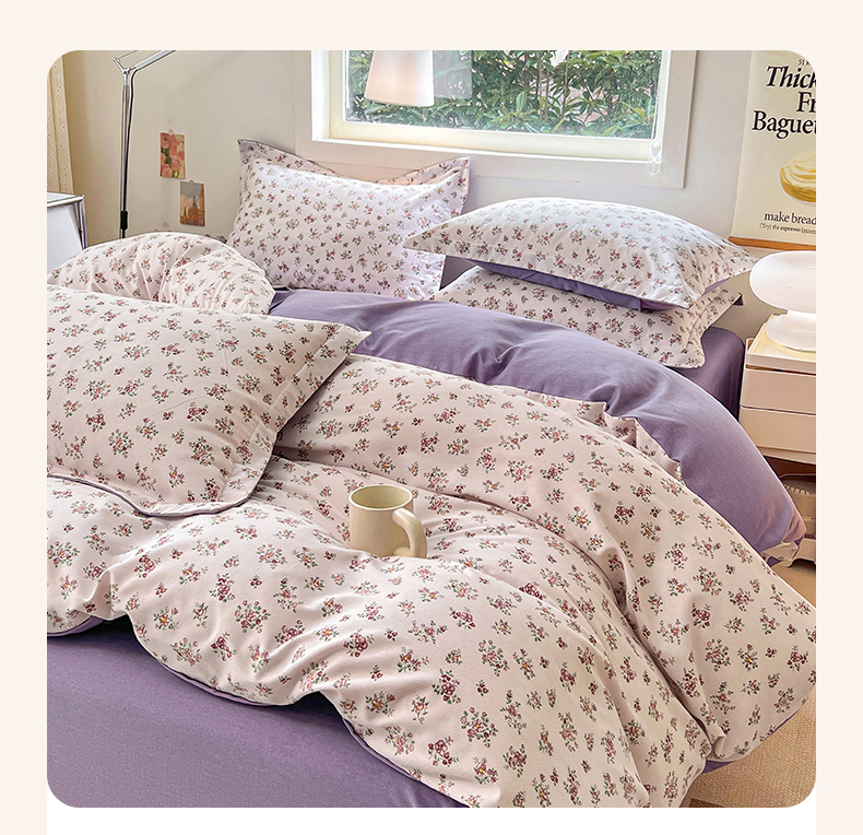 品乐家纺 2024新款全棉生态棉印花磨毛四件套 花密语-紫