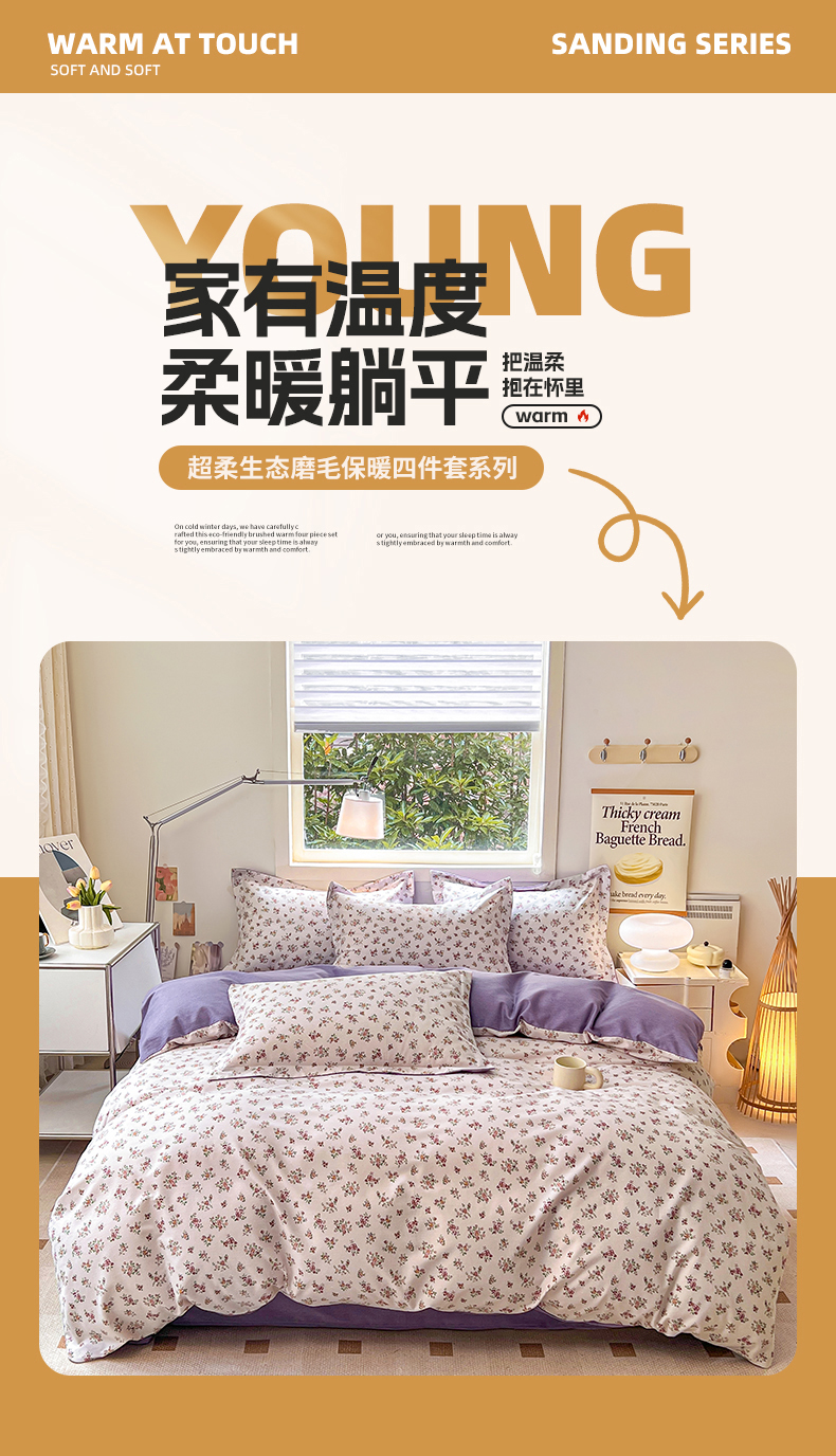 (总)品乐家纺 2025新款32支超柔生态磨毛四件套,川屿-咖,春意,朵唯-桔,朵唯-绿,花棠-粉,景秋-红,兰序-桔,兰茵-蓝,拾光-灰,桃汐-粉,桃汐-桔,小萌兔-绿,忆甜-米紫,郁郁幽兰-紫,鸢香-红,芷柔-粉