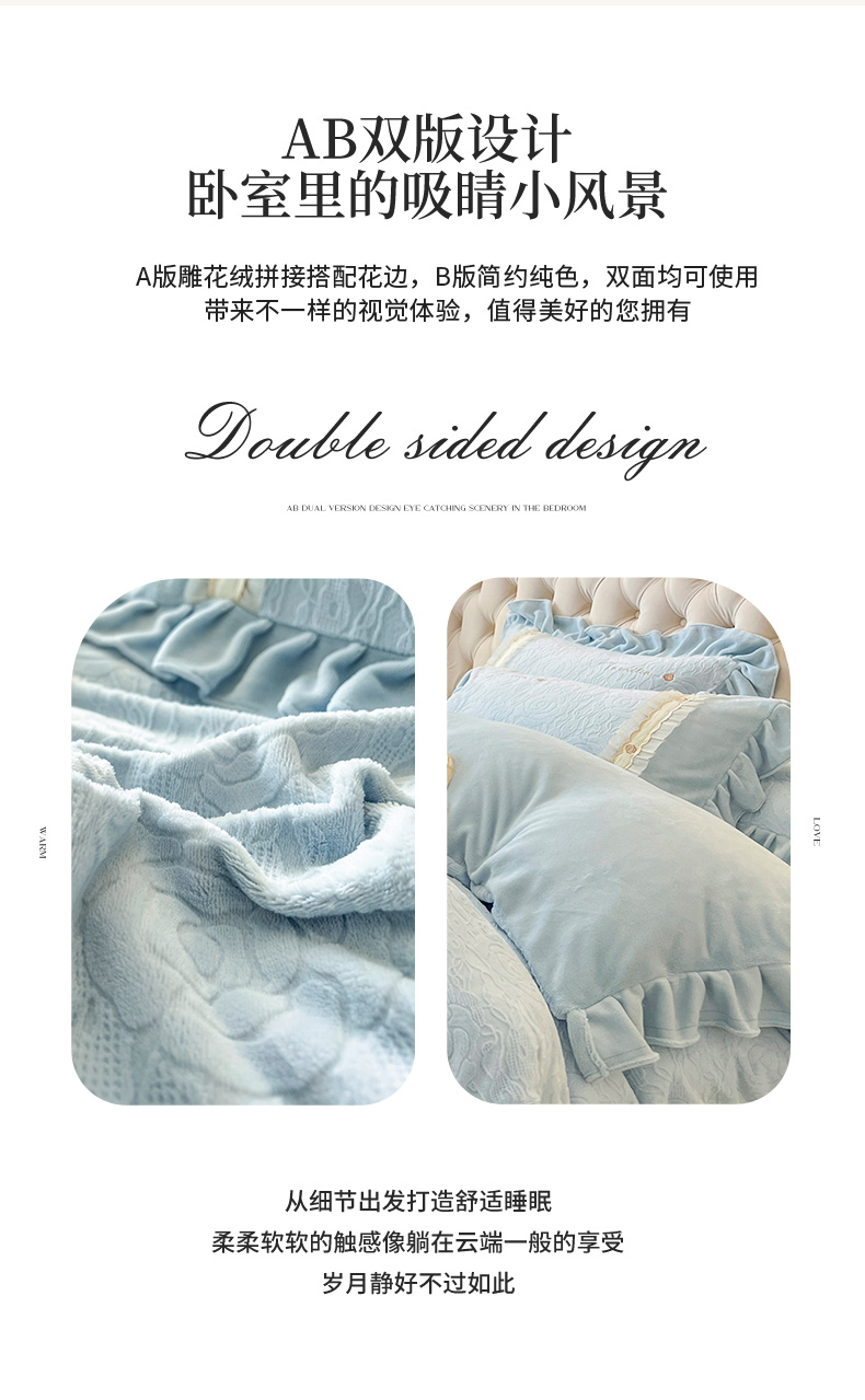 乐朵家居 2024新款设计款版权 艾洛花园 牛奶绒床单款床盖款四件套 天蓝(控价 单288 夹棉318)