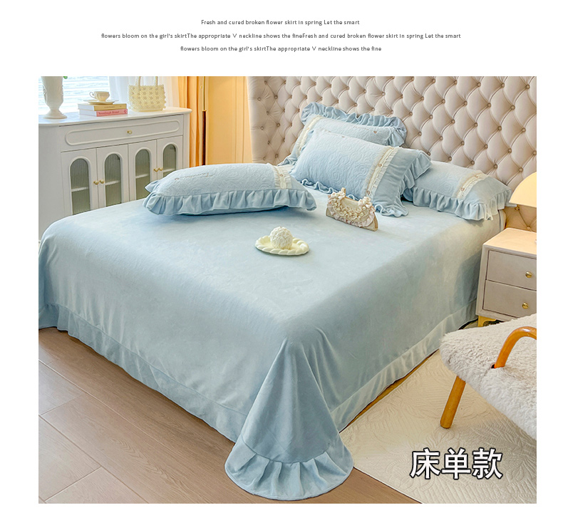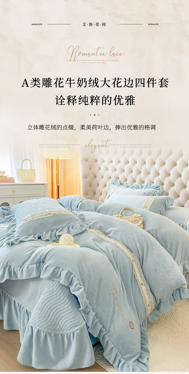 (总)乐朵家居 2025新款 克拉玫瑰 牛奶绒 床单款夹棉床盖四件套(控价床单268床盖298),浅杏色,丁香紫,奶白色,湖水蓝,浅豆沙,浅粉玉