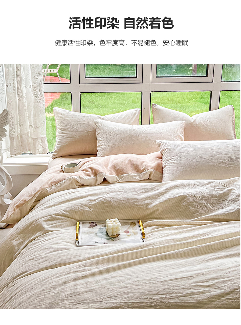 当前位置: 91家纺网 > 商品网购 > 床品套件 > 四件套 > 牛奶绒四件套 > 2024最新无印良品风双拼全棉色织水洗棉加牛奶绒四件套简约全棉拼牛奶绒 棉+绒-米极细条