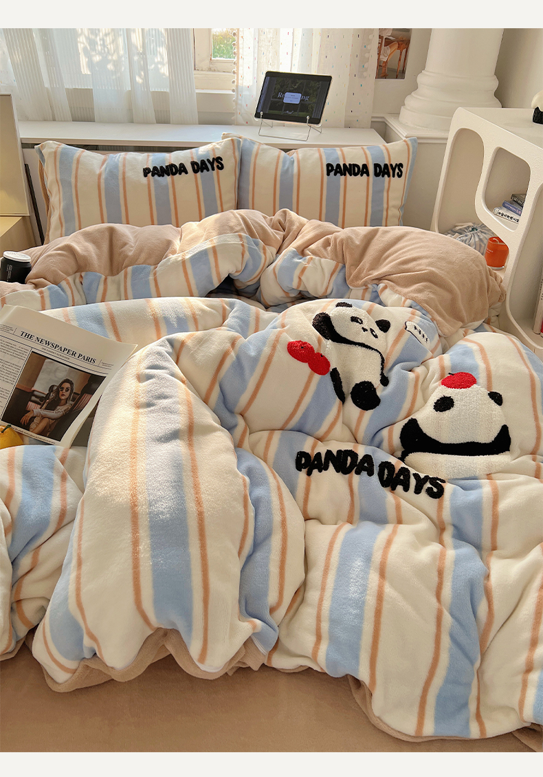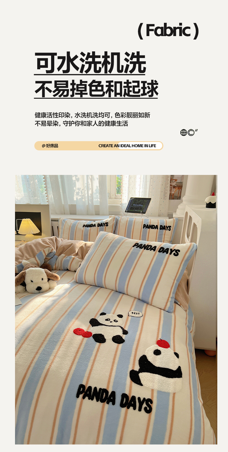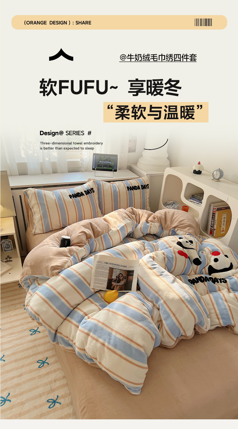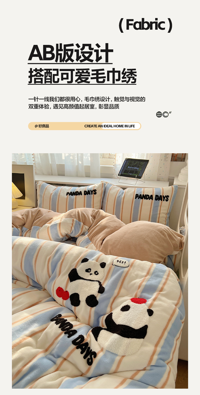 雅居纺家纺 2024新款大版毛巾绣牛奶绒四件套 嬉戏小熊猫
