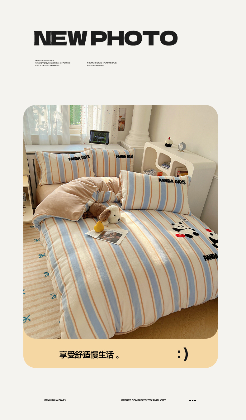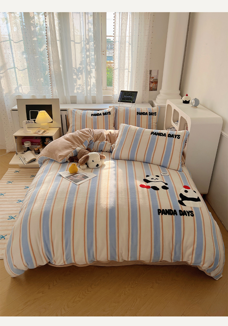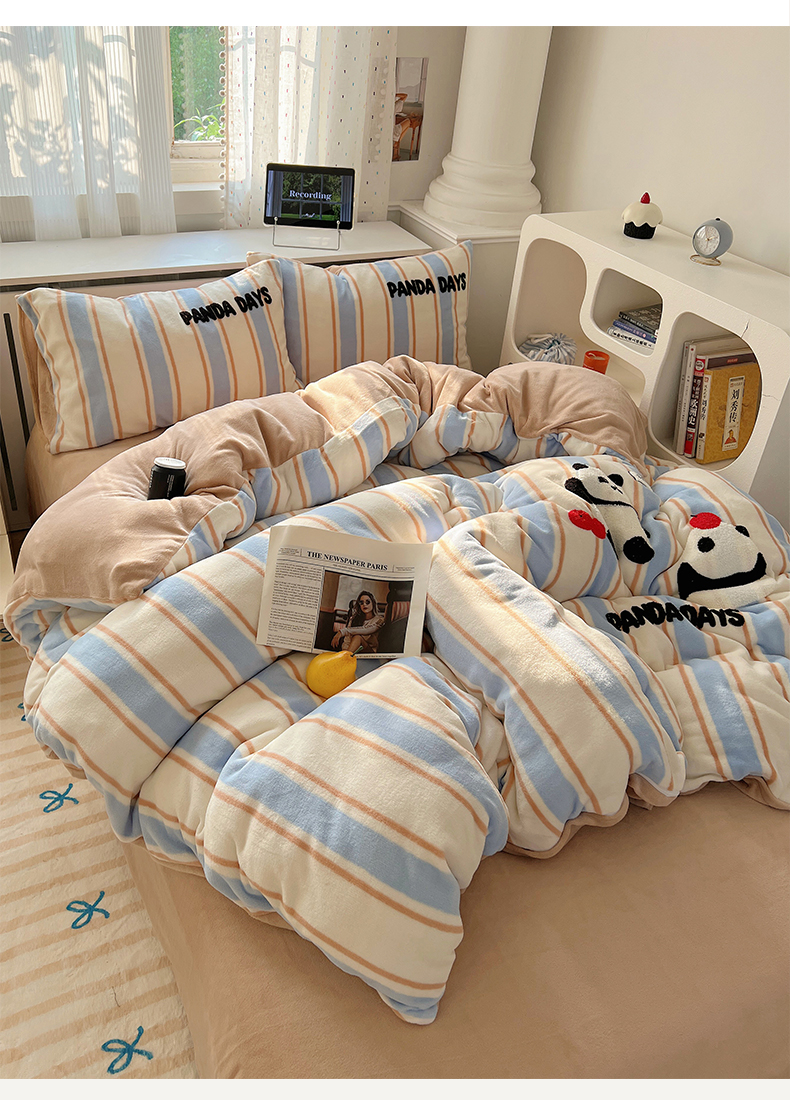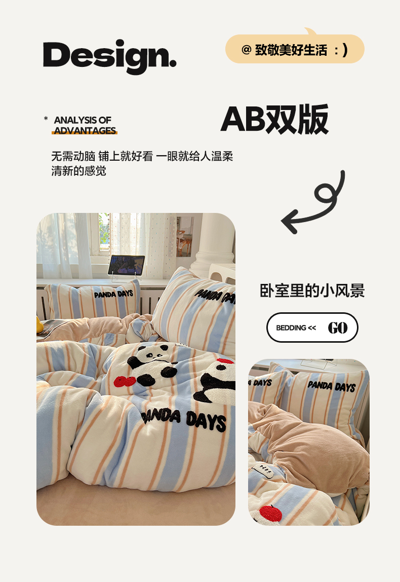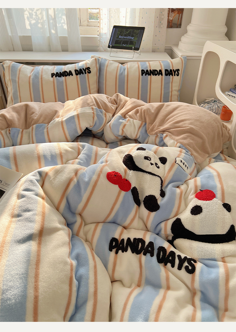 雅居纺家纺 2024新款大版毛巾绣牛奶绒四件套 嬉戏小熊猫