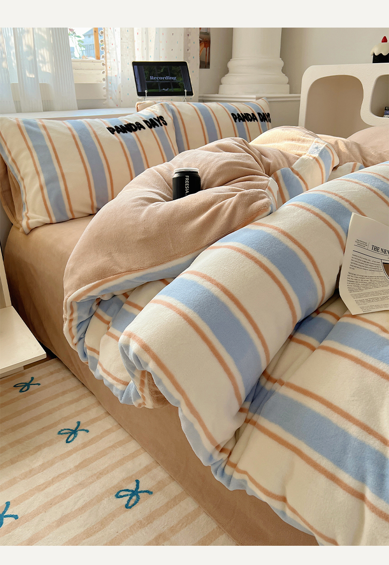 (总)雅居纺家纺 2025新款简约兔绒球球保暖舒适四件套-波点,波点-白咖,波点-粉黄,波点-咖,波点-蓝黄