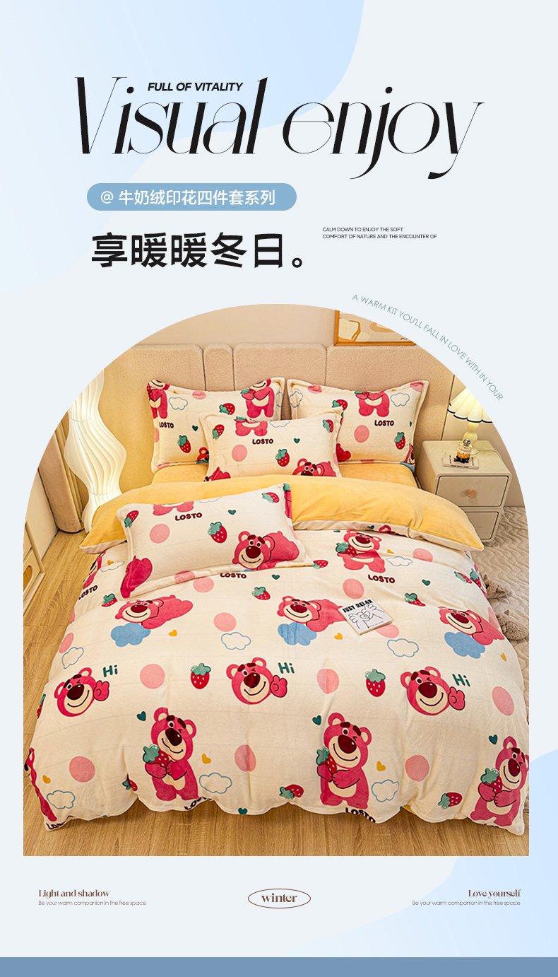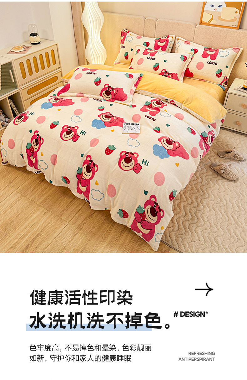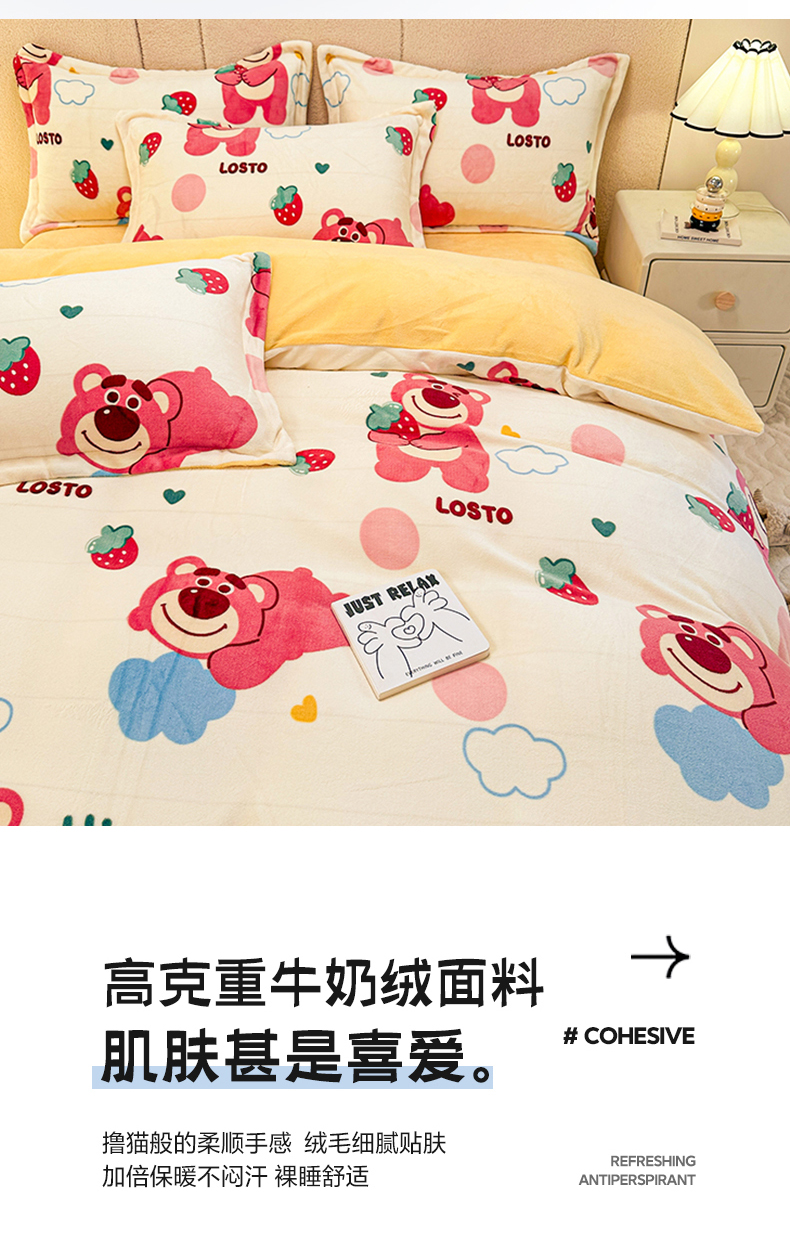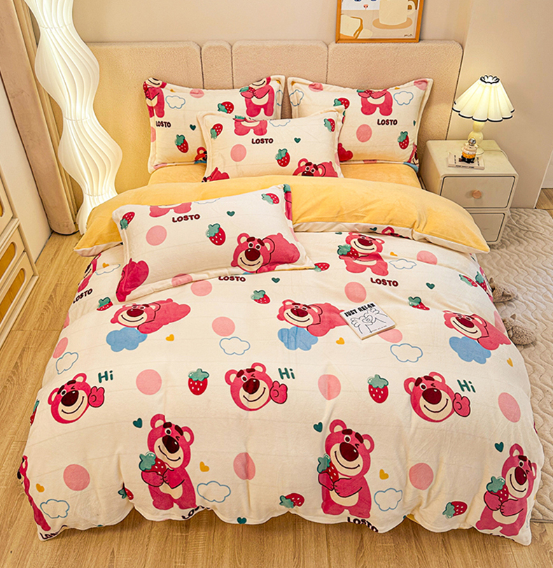 卡普二店 2024新款牛奶绒印花四件套 萌趣熊宝