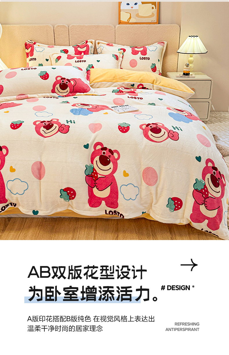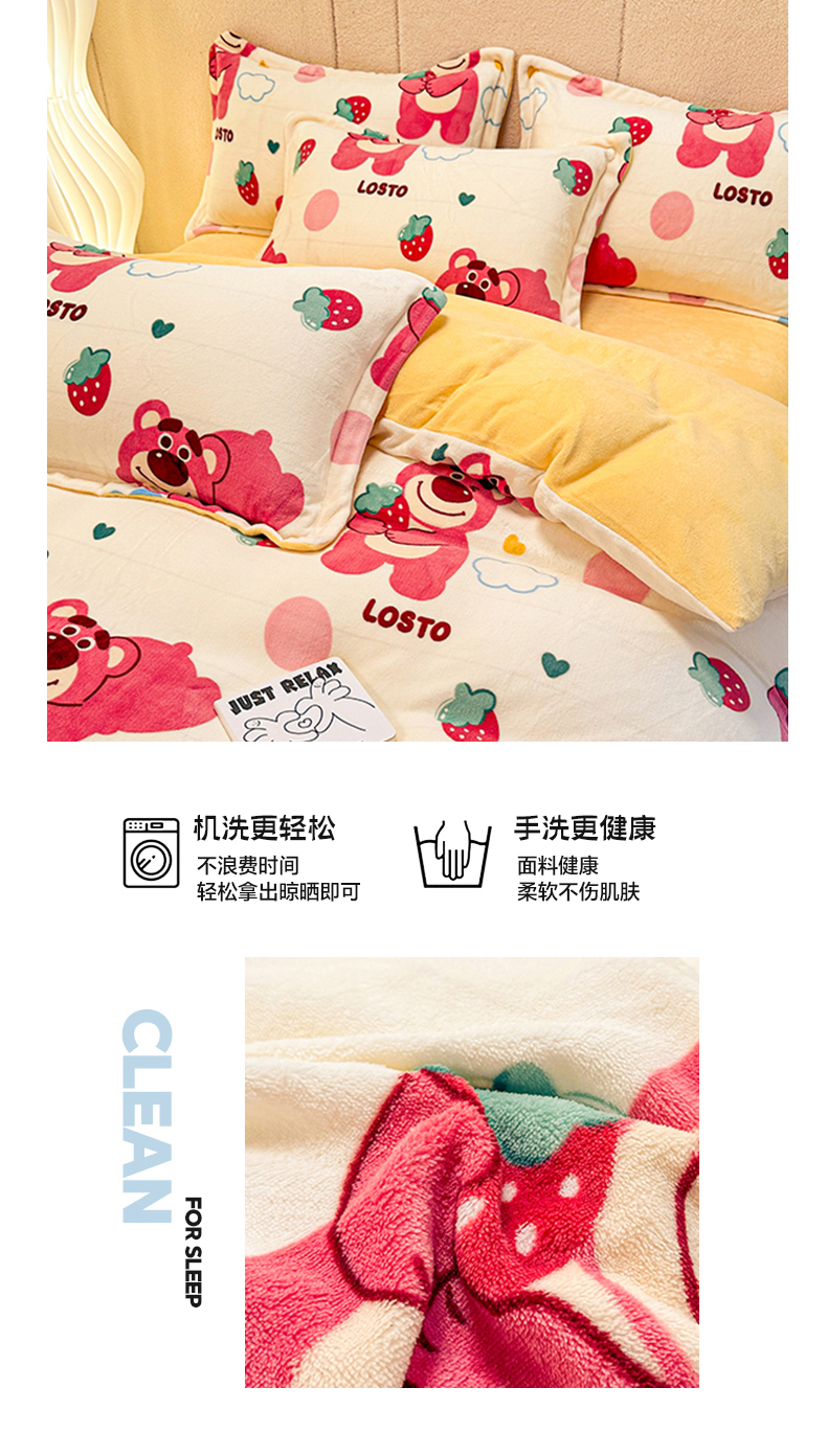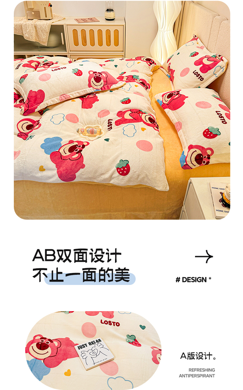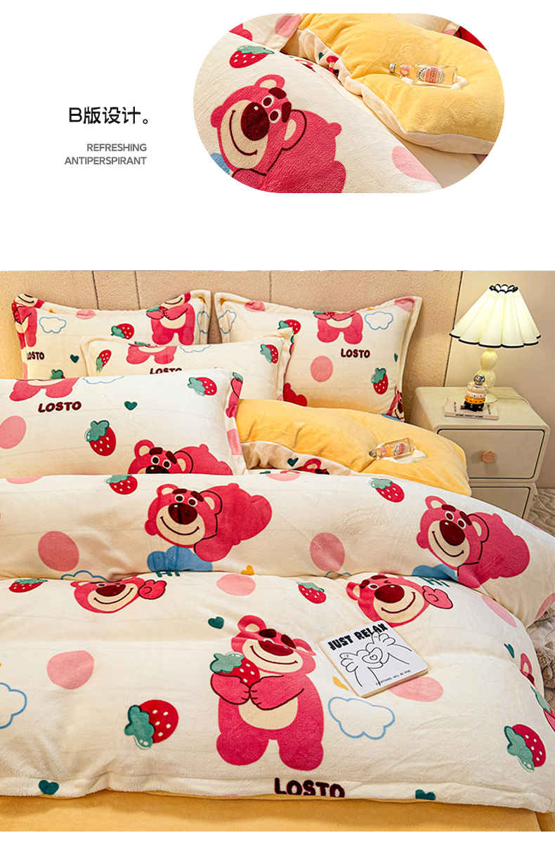 卡普二店 2024新款牛奶绒印花四件套 萌趣熊宝